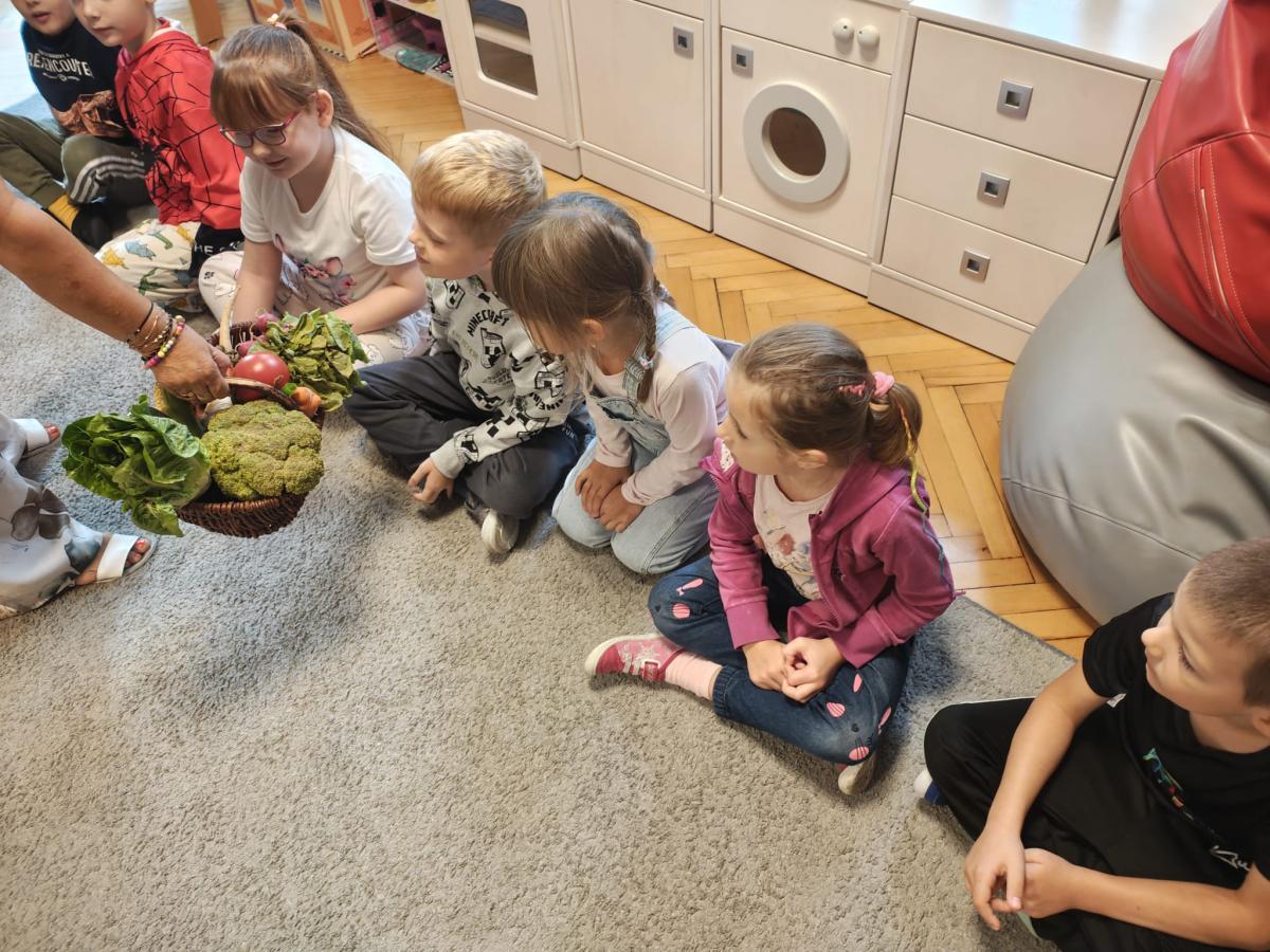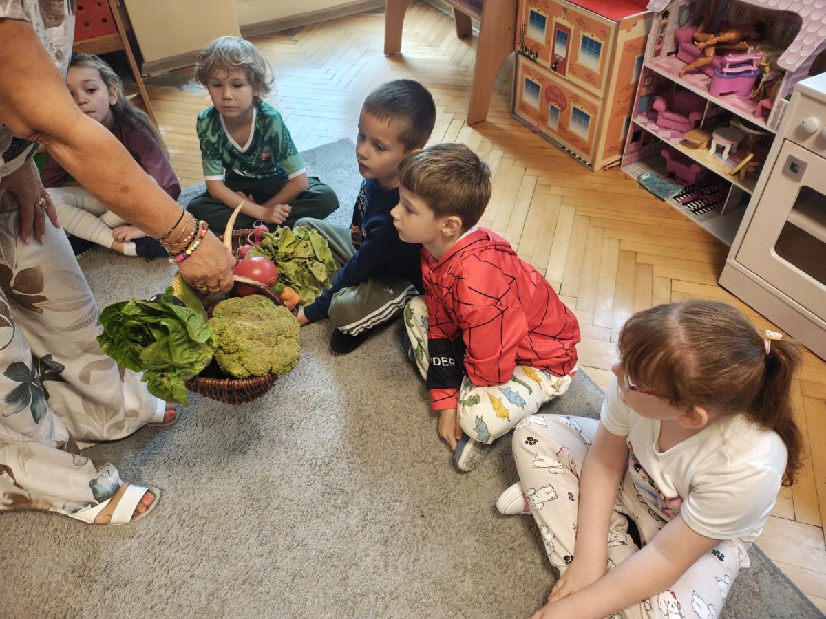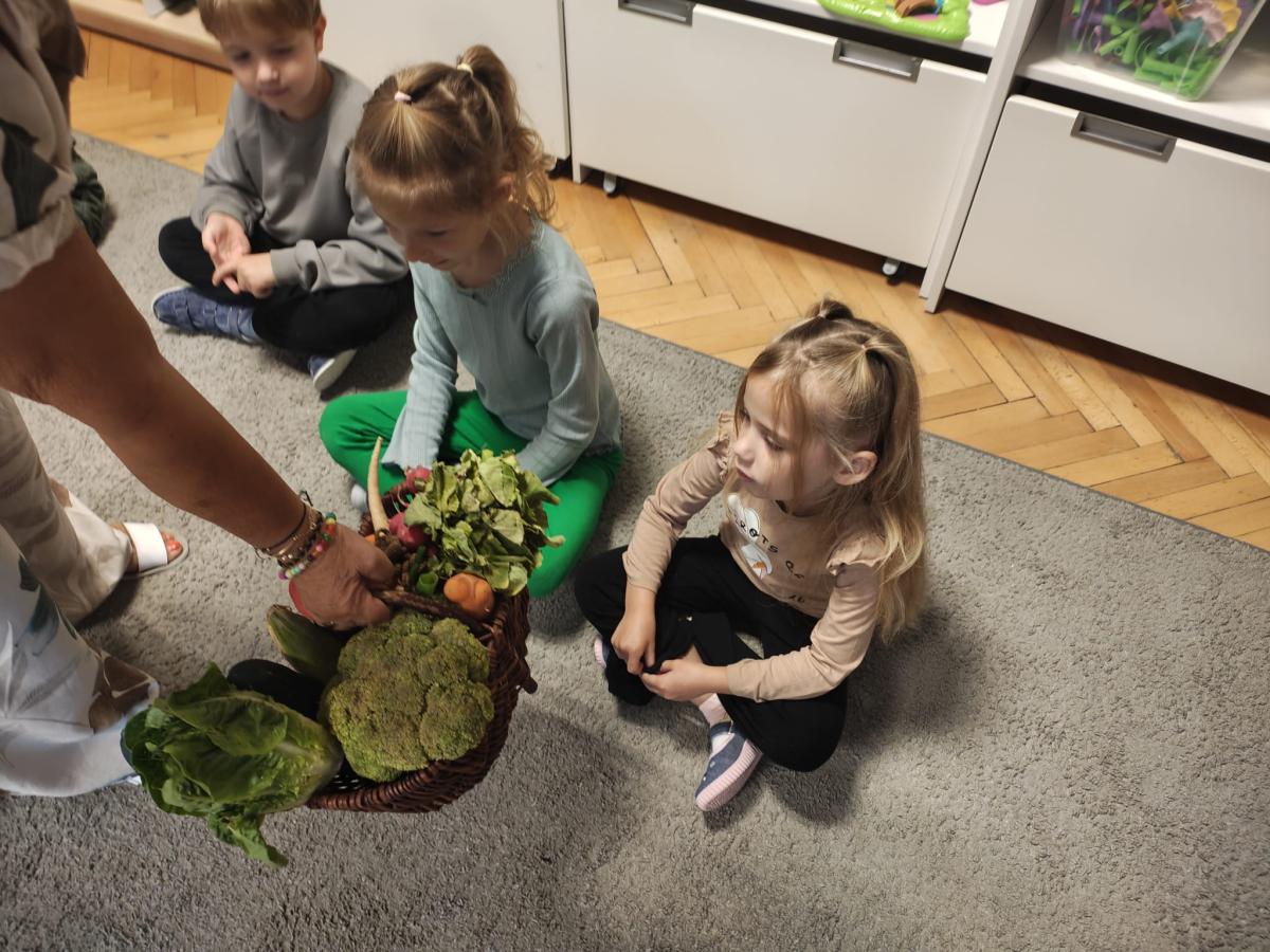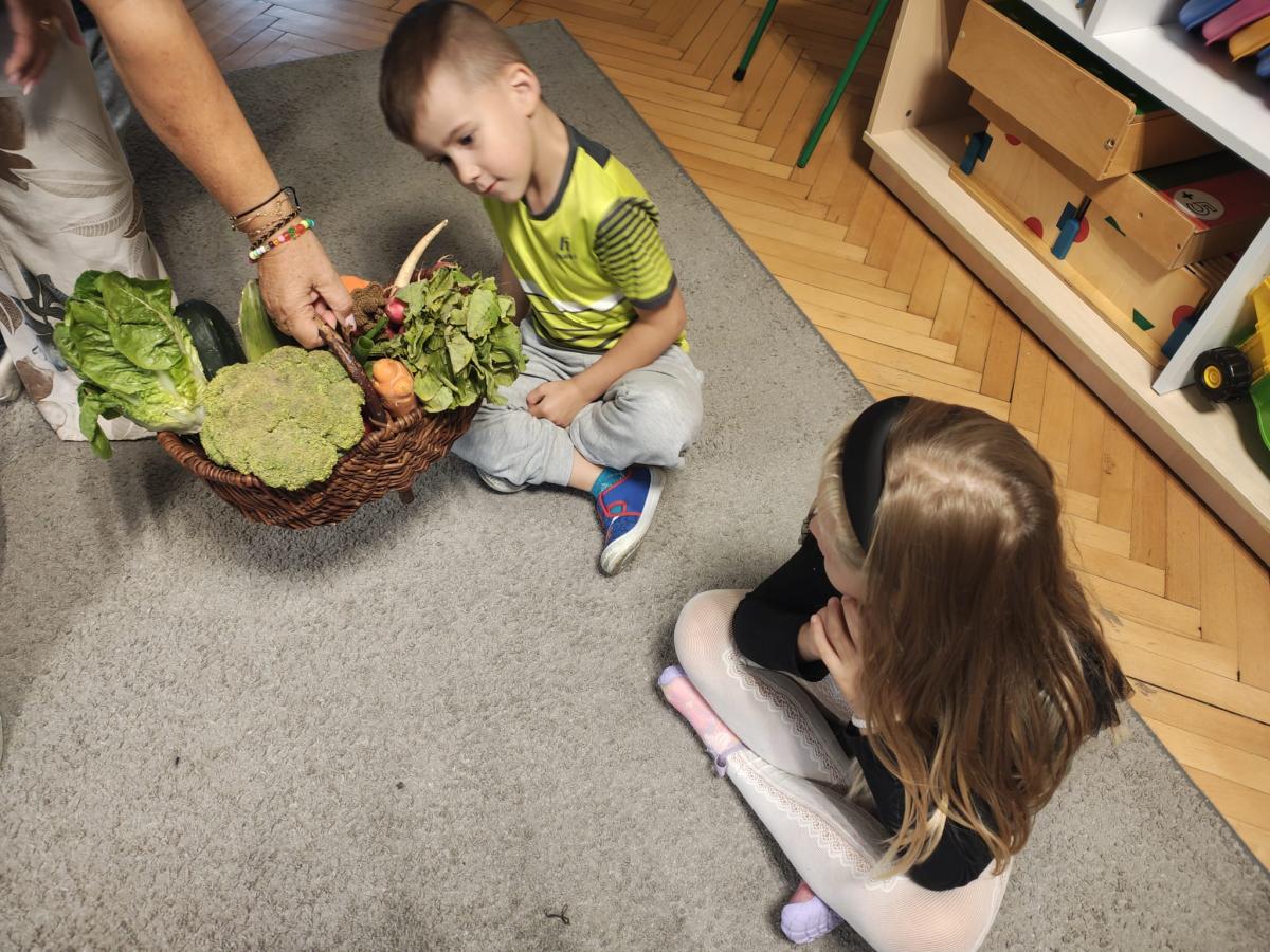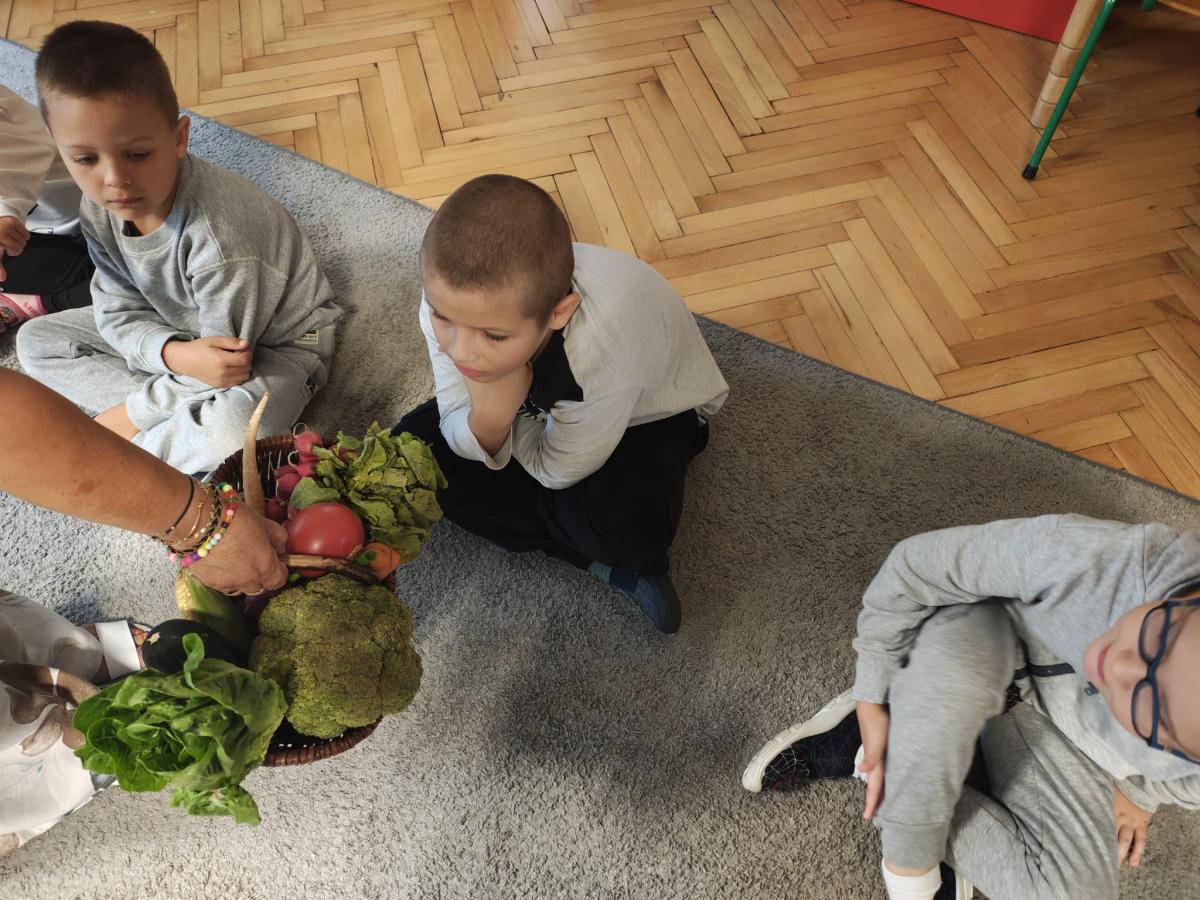Dziaj na zajeciach utrwaliliśmy sobie nasze wiadomości o warzywach. Dzieci z zadowoleniem wyjmowały z worka warzywa i poznawały zmysłem dotyku nie patrząc jarzyny. Potem lepiliśmy dyńkę z plsteliny. Zobaczcie sami jak fajnie się bawiliśmy.....