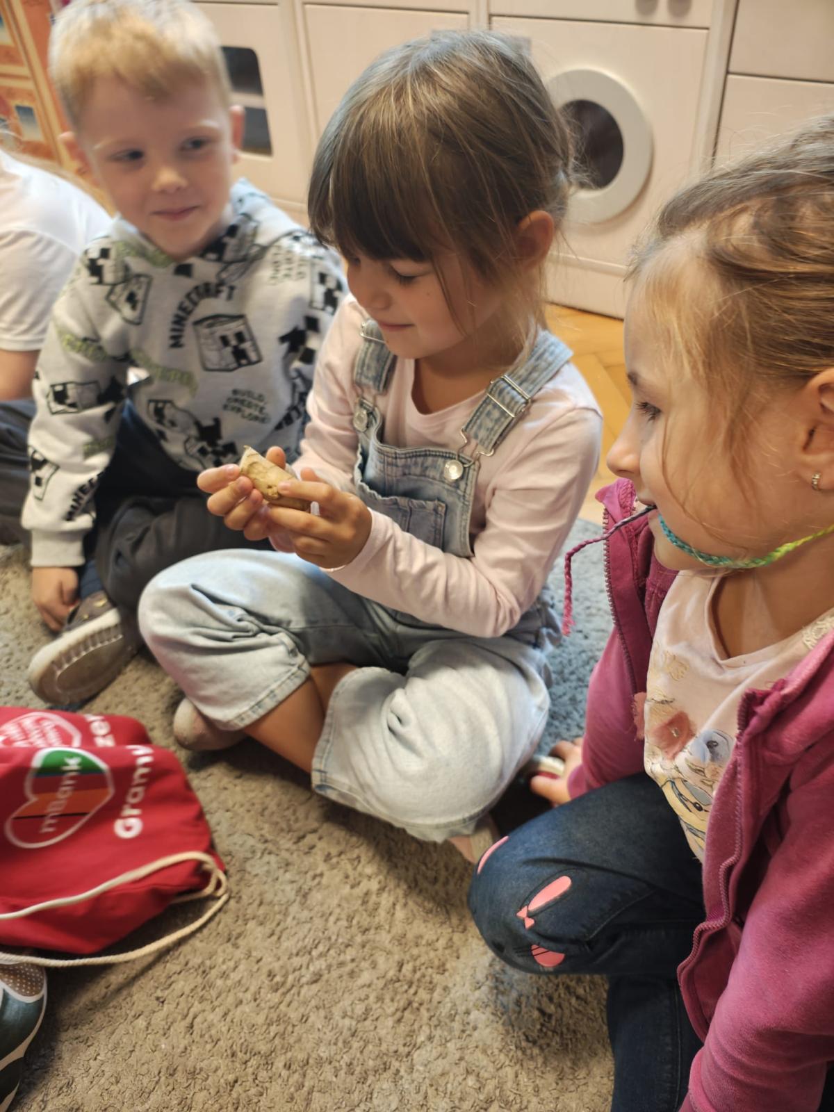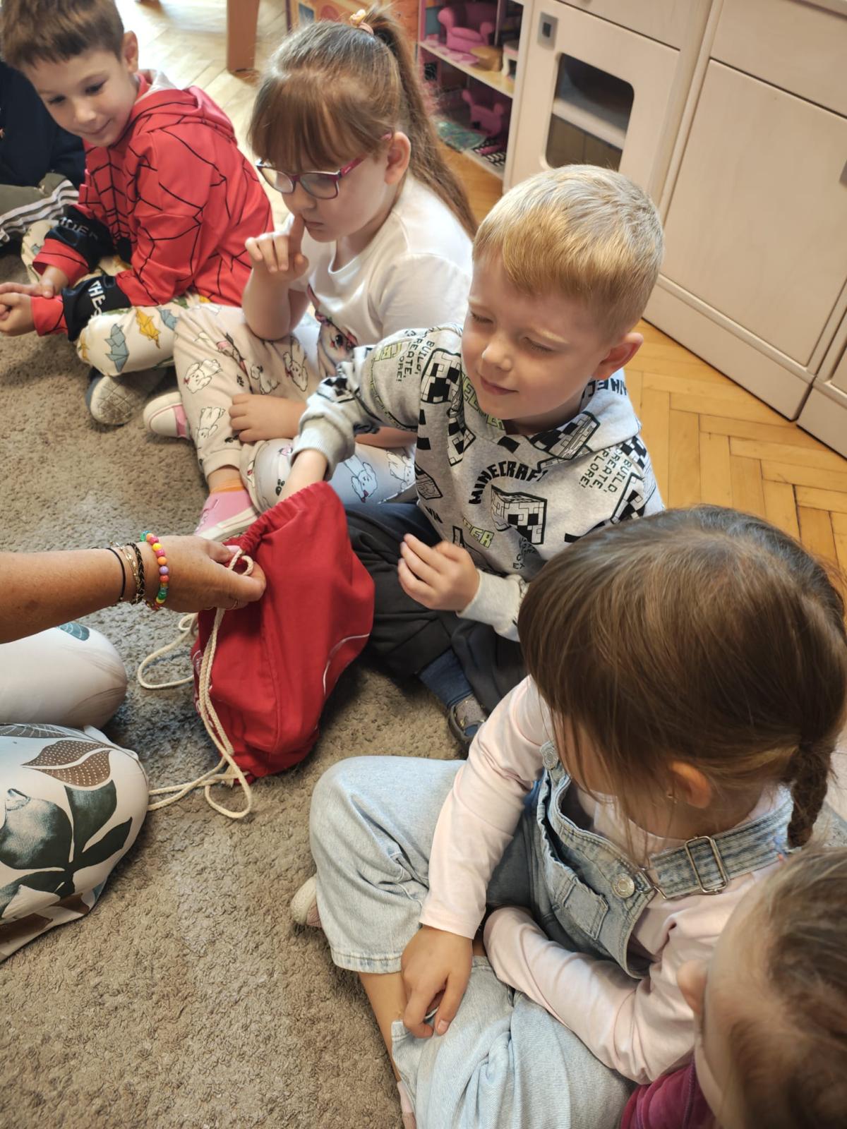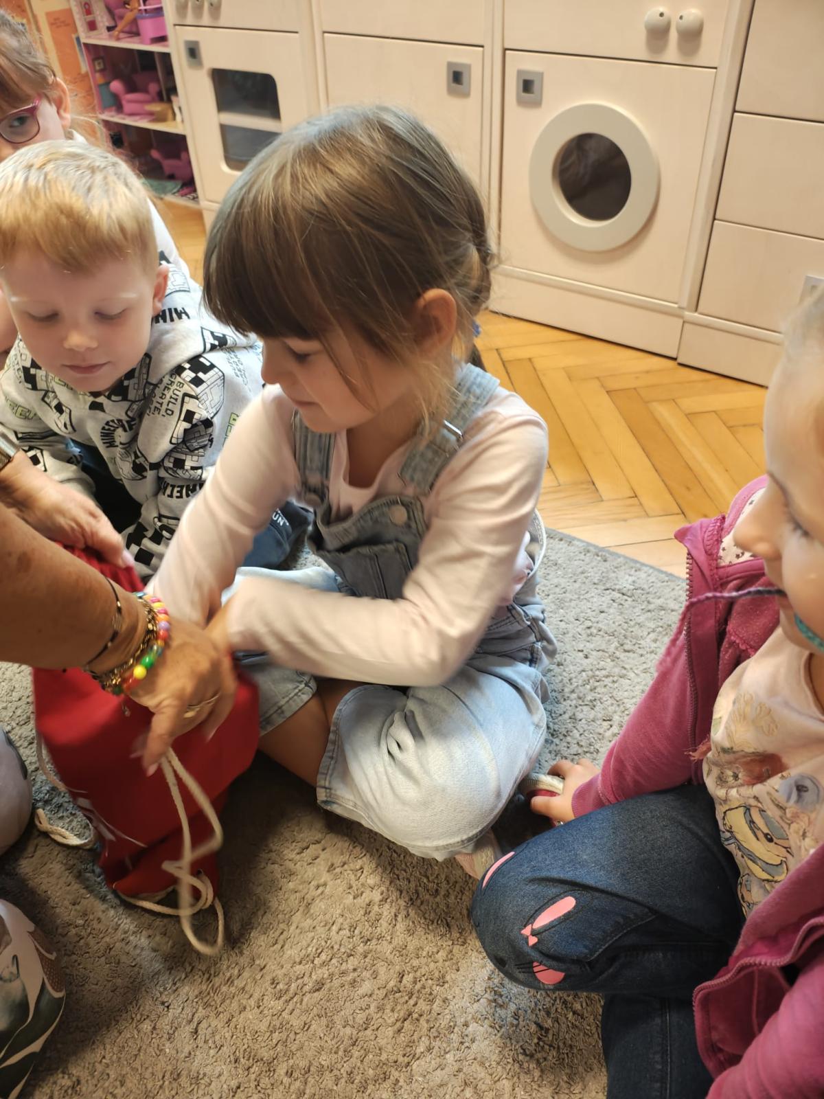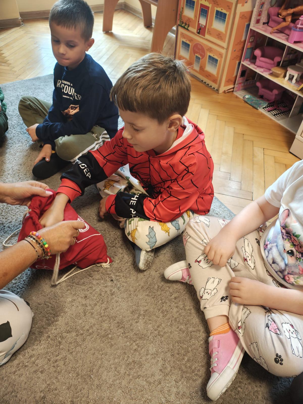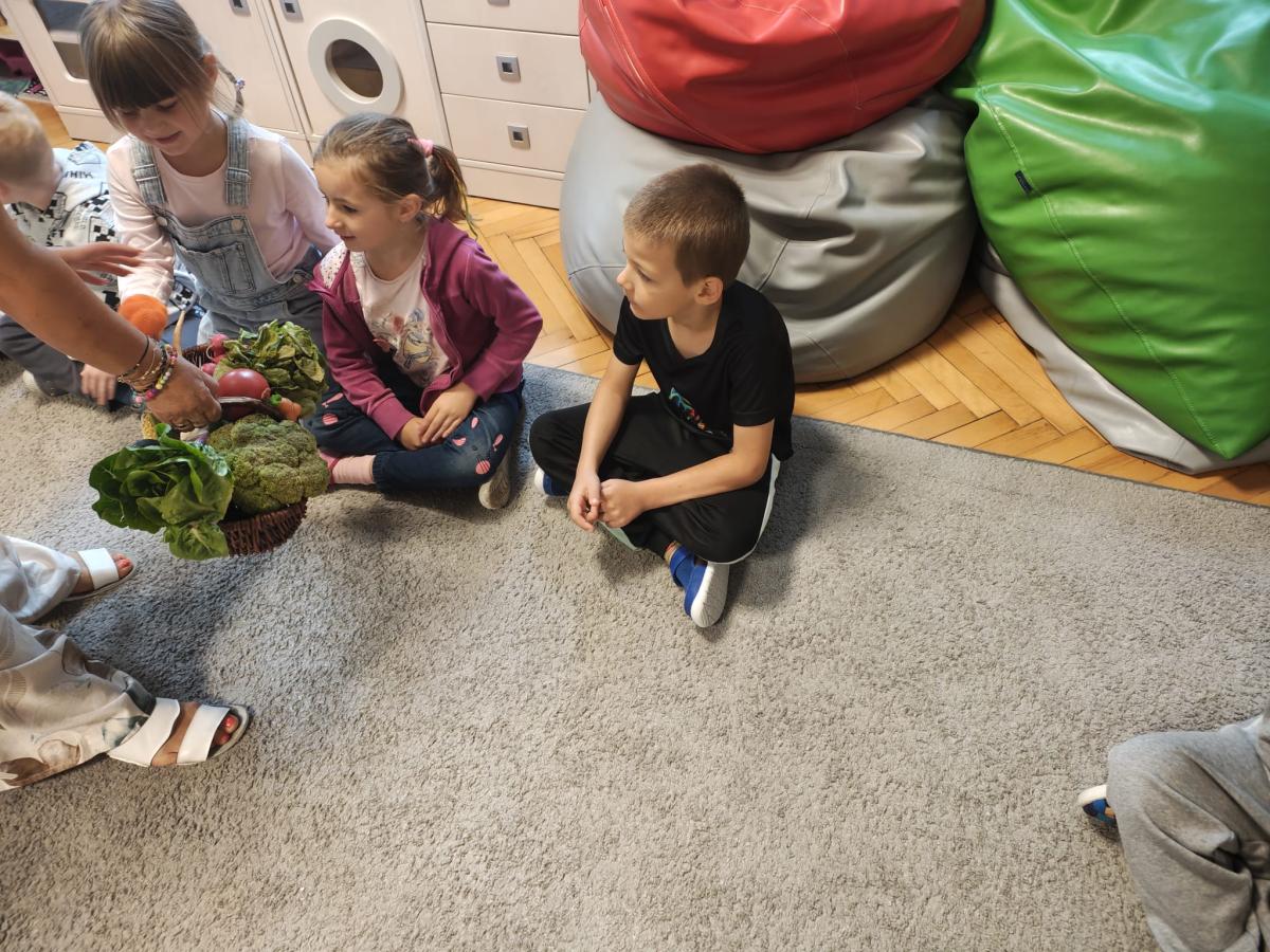 Dziaj na zajeciach utrwaliliśmy sobie nasze wiadomości o warzywach. Dzieci z zadowoleniem wyjmowały z worka warzywa i poznawały zmysłem dotyku nie patrząc jarzyny. Potem lepiliśmy dyńkę z plsteliny. Zobaczcie sami jak fajnie się bawiliśmy.....
