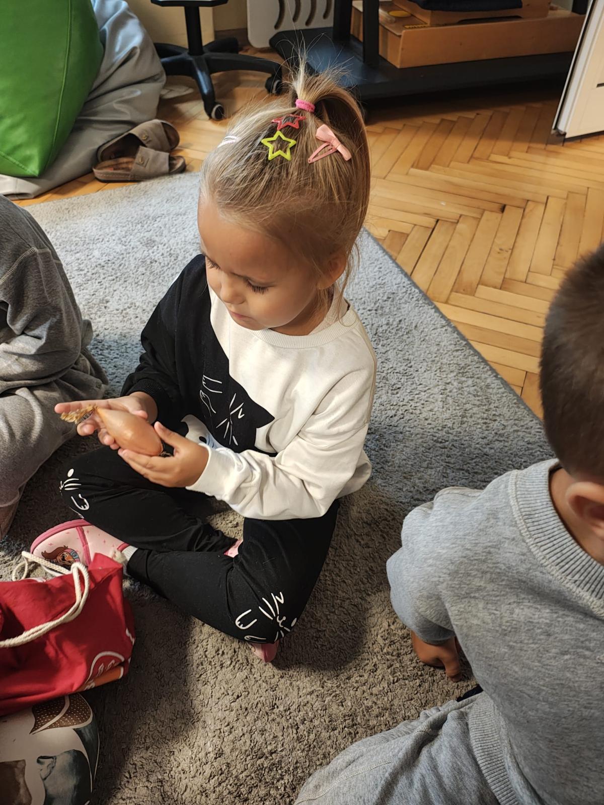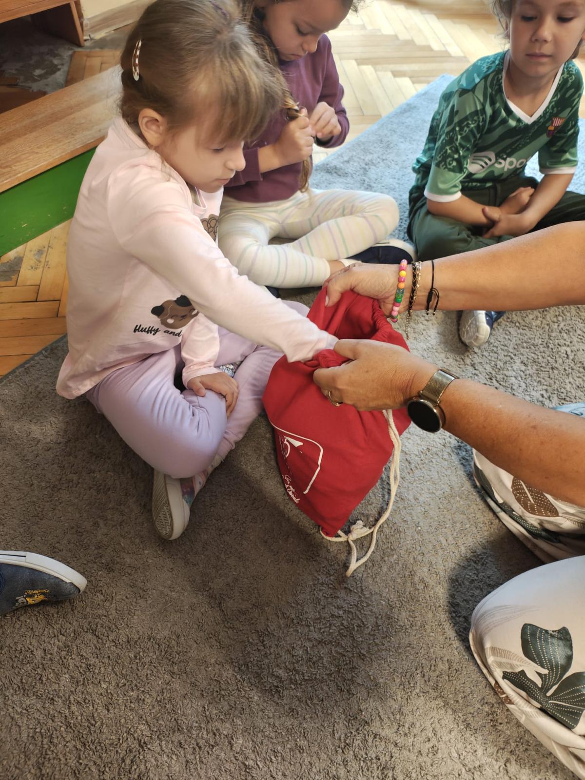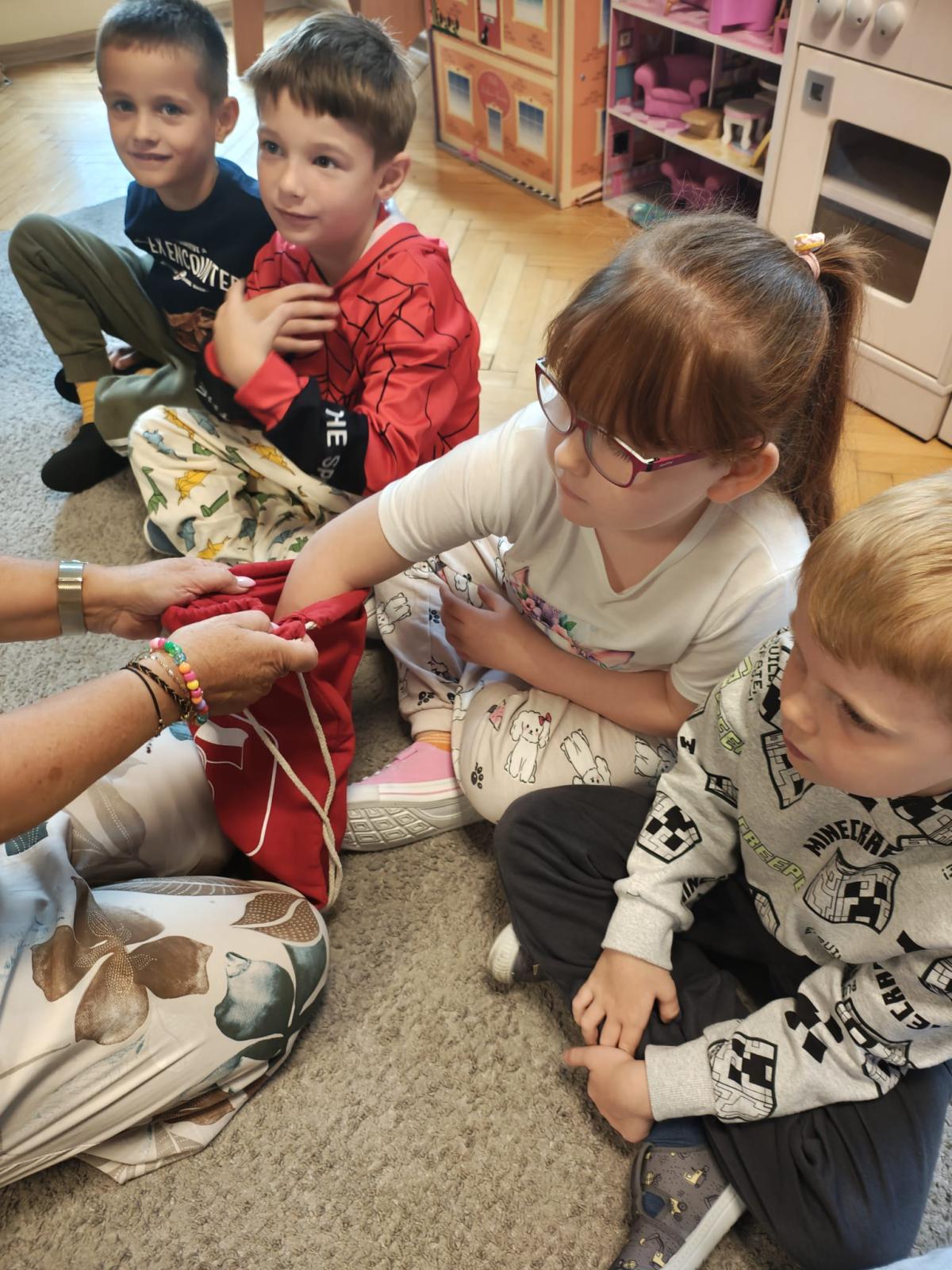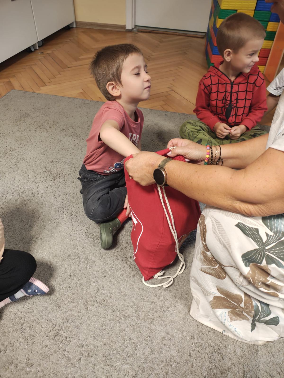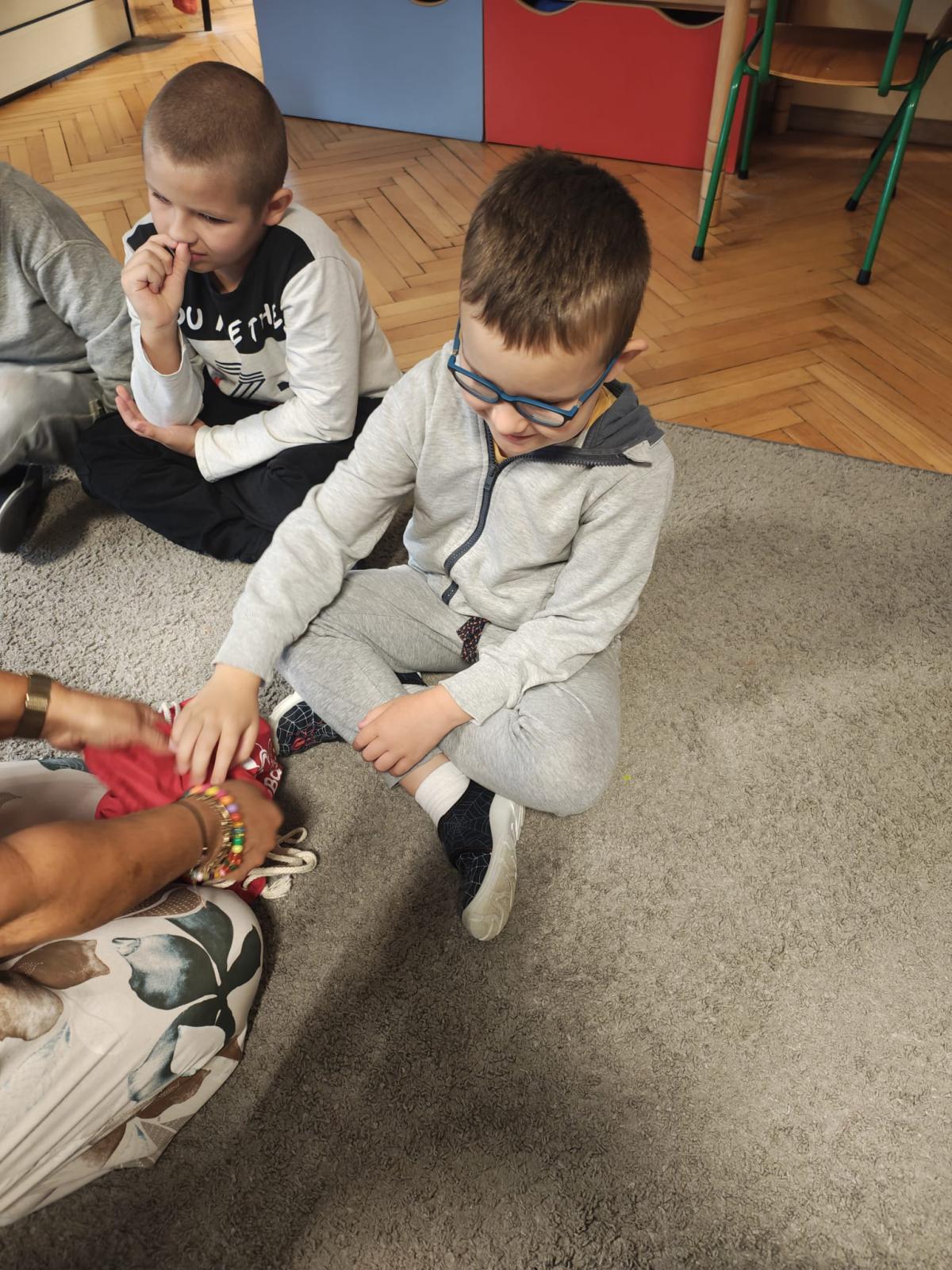 Dziaj na zajeciach utrwaliliśmy sobie nasze wiadomości o warzywach. Dzieci z zadowoleniem wyjmowały z worka warzywa i poznawały zmysłem dotyku nie patrząc jarzyny. Potem lepiliśmy dyńkę z plsteliny. Zobaczcie sami jak fajnie się bawiliśmy.....