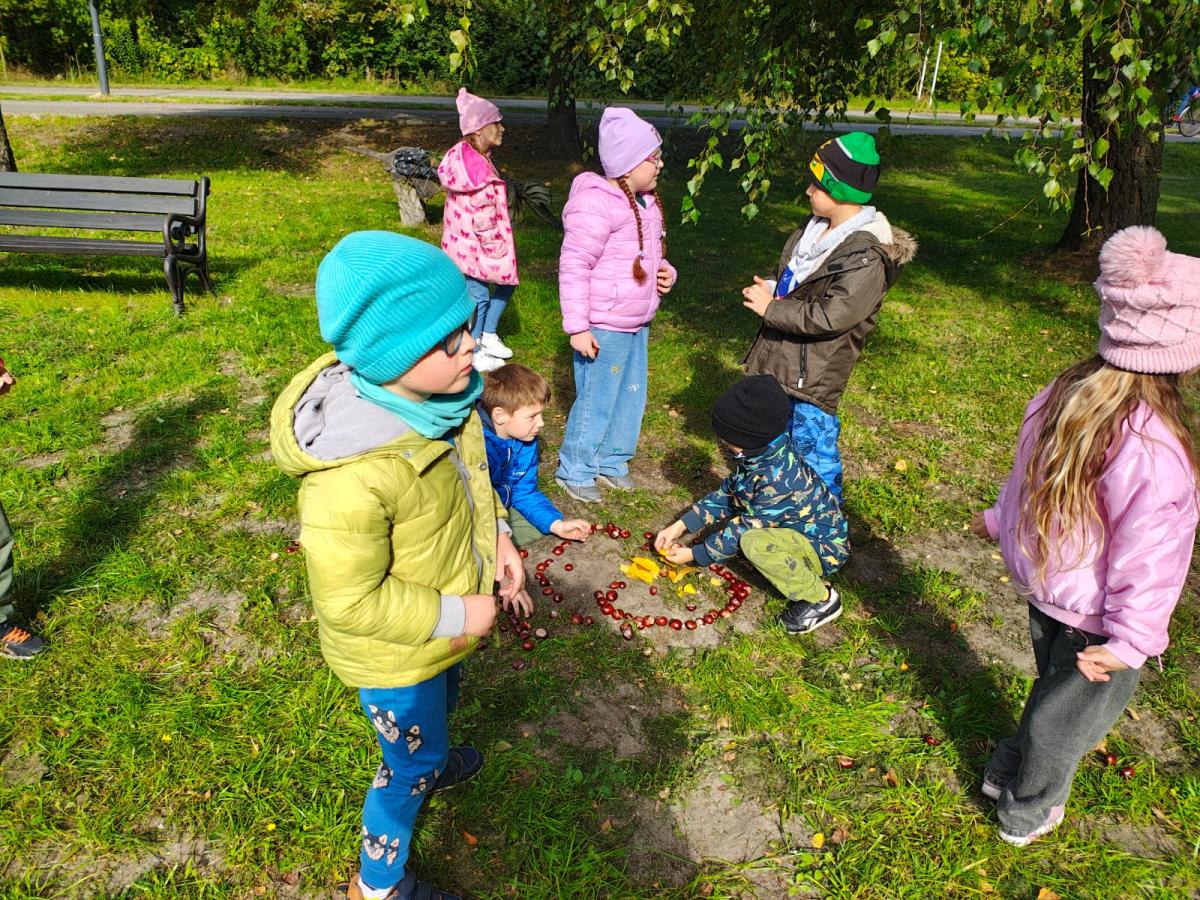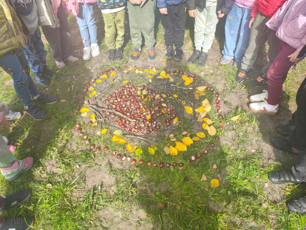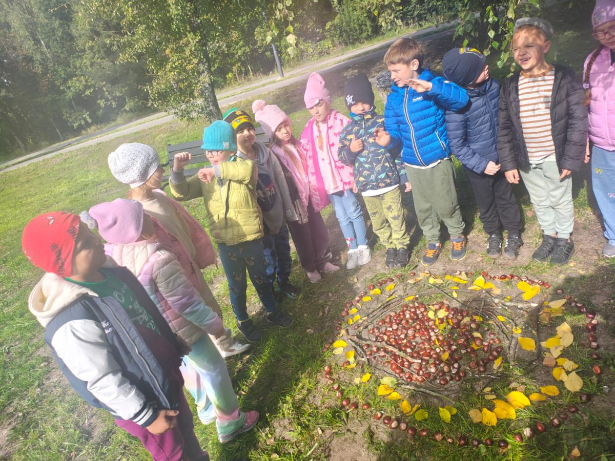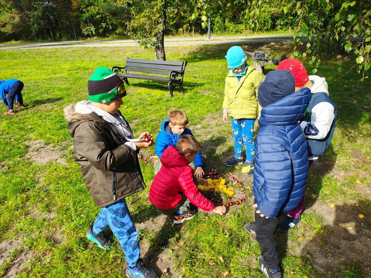 Pierwsze zadanie z programu klasa w terenie wykonane. Zobaczcie sami jaką piękną mandalę z darów jesieni wykonały Tygryaki. Przepiękna mandala została ozdobą parku w pobliżu przedszkola . Brawo MY!