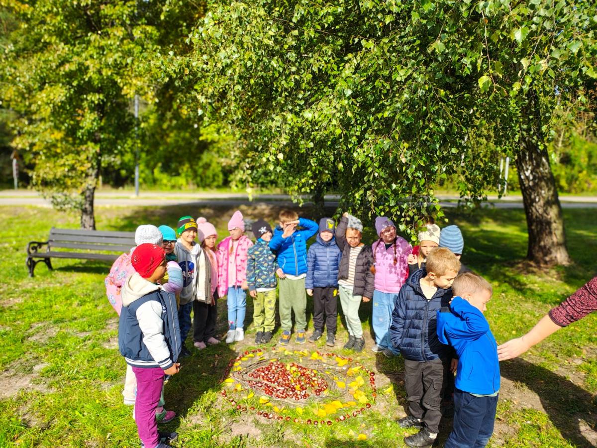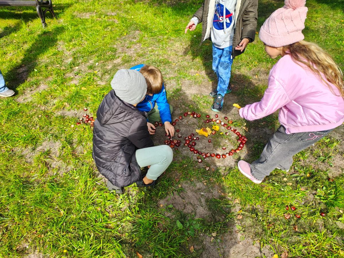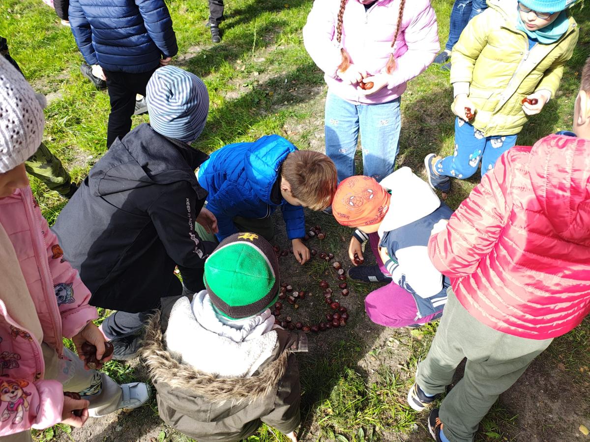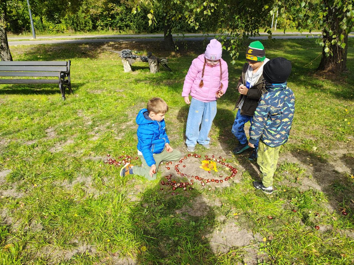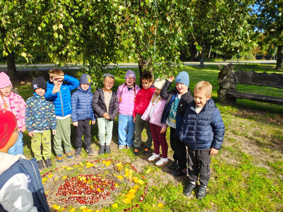 Pierwsze zadanie z programu klasa w terenie wykonane. Zobaczcie sami jaką piękną mandalę z darów jesieni wykonały Tygryaki. Przepiękna mandala została ozdobą parku w pobliżu przedszkola . Brawo MY!