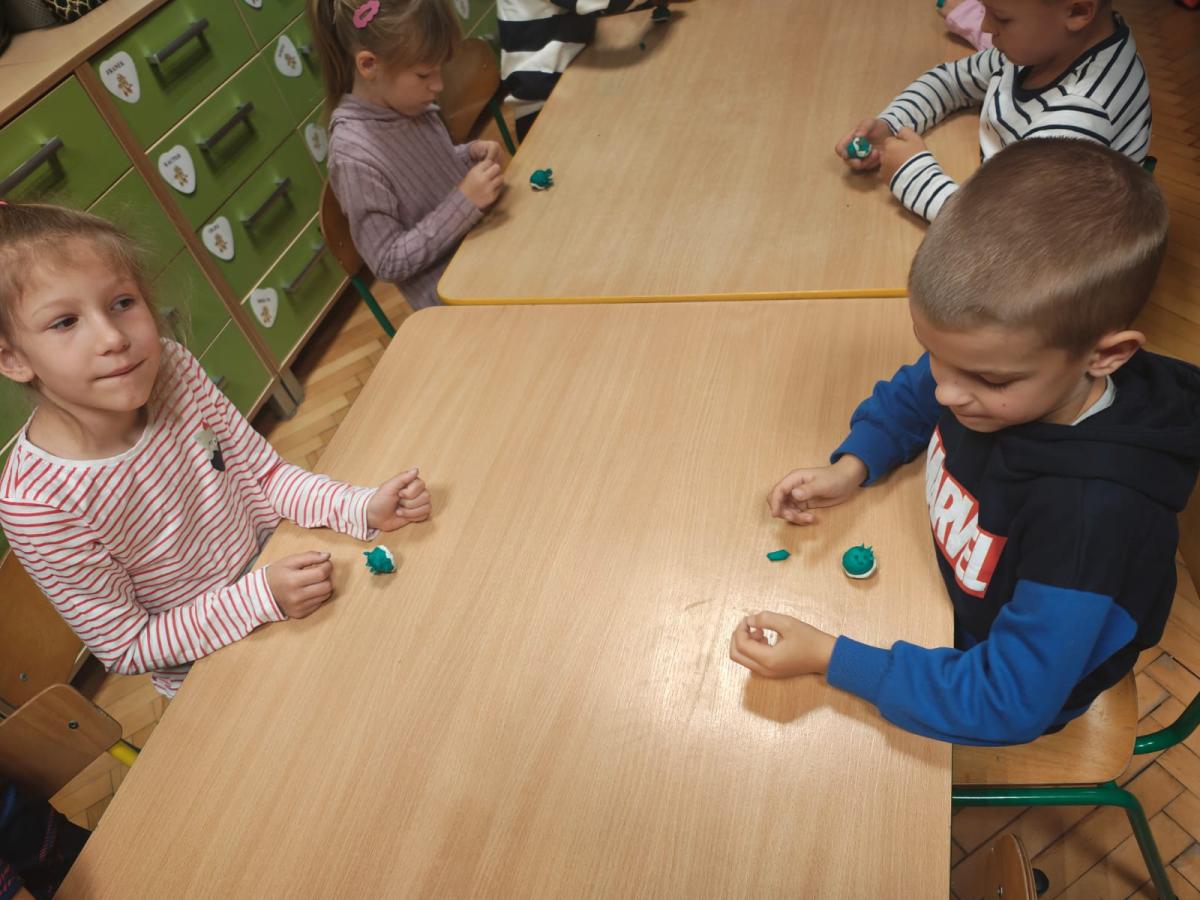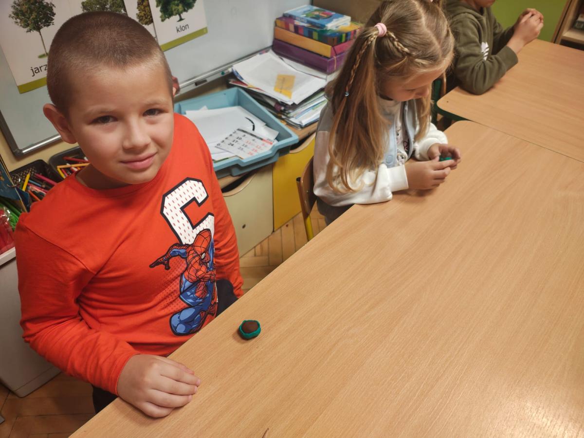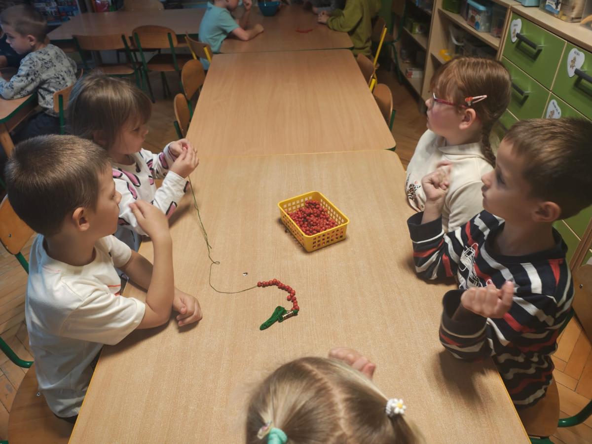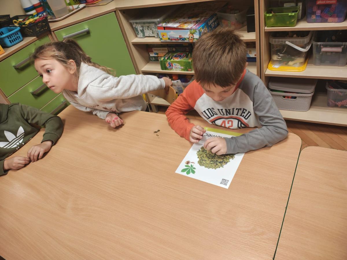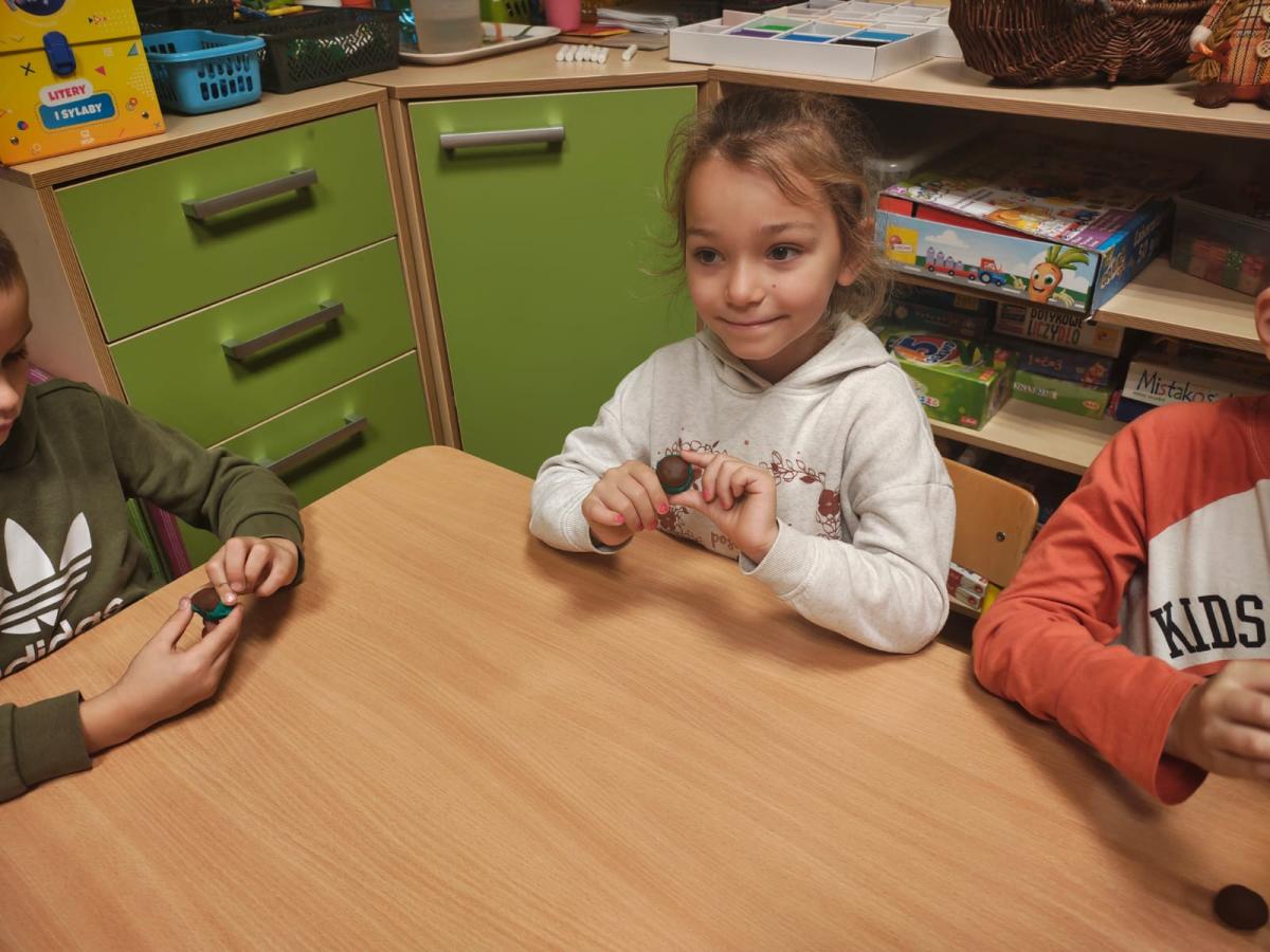 Na zajęciach utrwaliliśmy sobie nazwy drzew rosnących w parku a także zrobiliśmy jarzębinowe naszyjniki oraz ulepiliśmy kasztany z plasteliny. Zobaczcie sami jakszybko i radośnie spędziliśmy ten dzień.