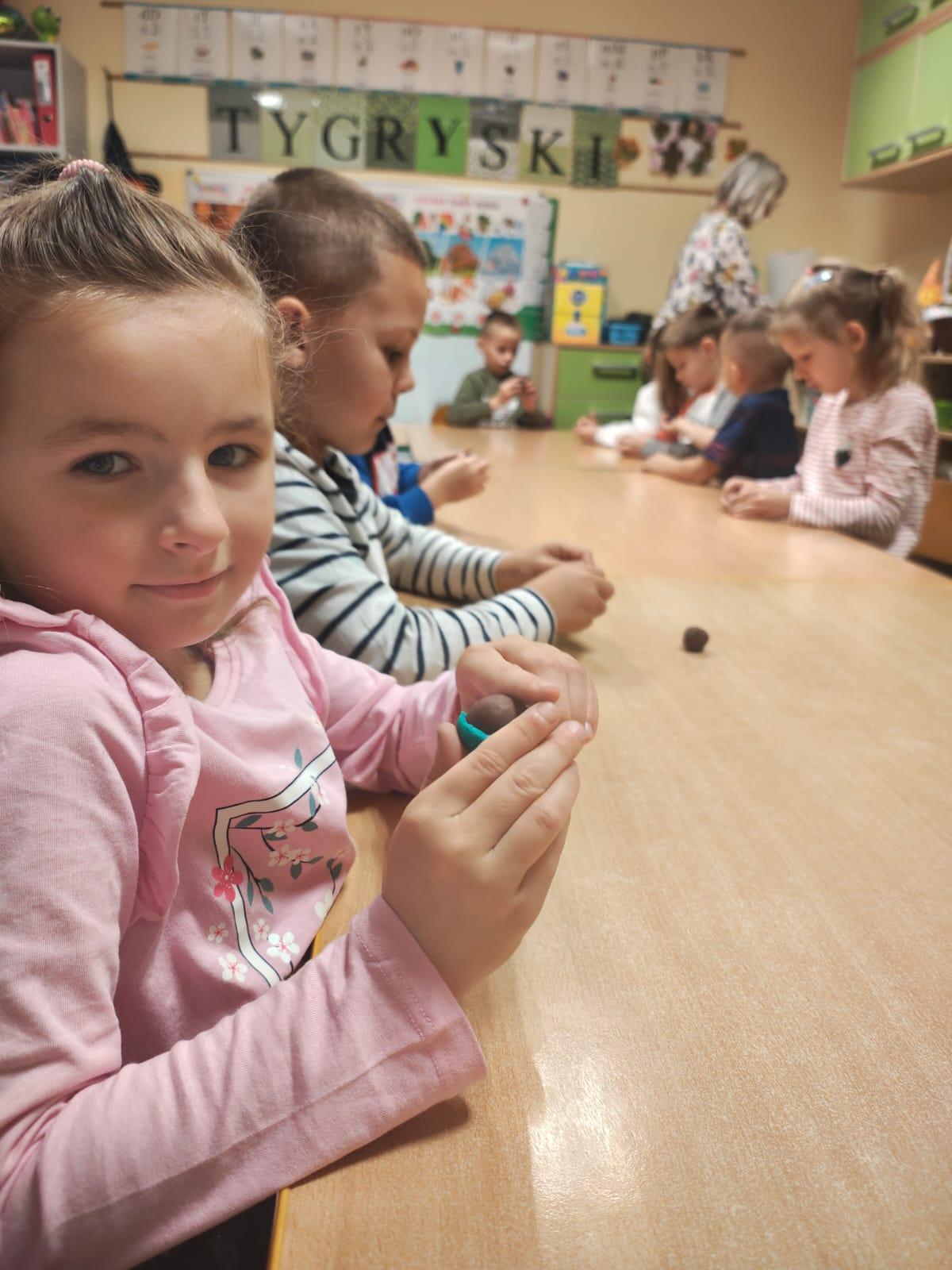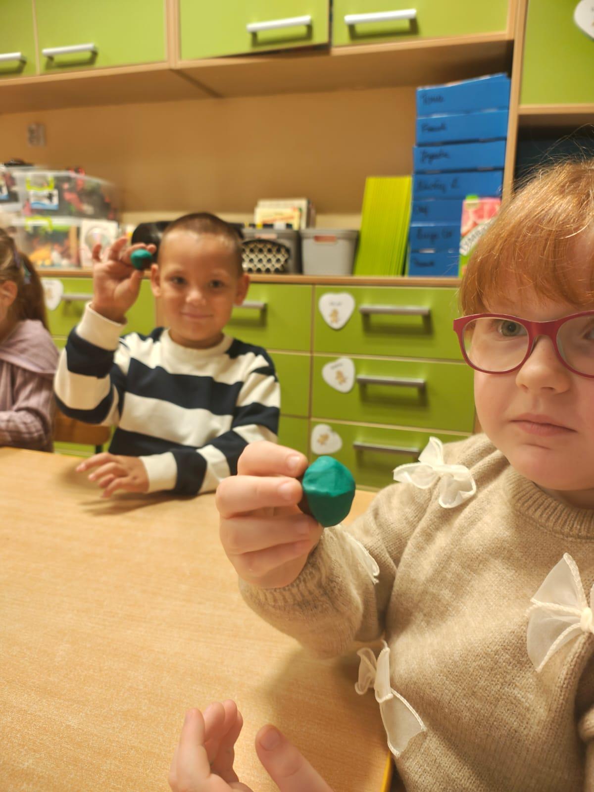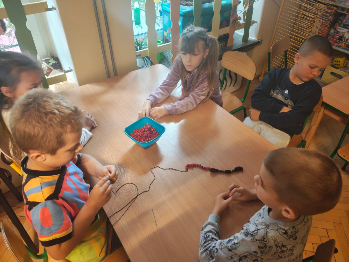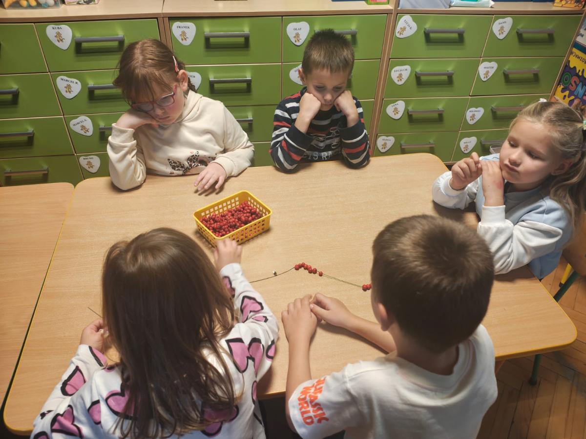 Na zajęciach utrwaliliśmy sobie nazwy drzew rosnących w parku a także zrobiliśmy jarzębinowe naszyjniki oraz ulepiliśmy kasztany z plasteliny. Zobaczcie sami jakszybko i radośnie spędziliśmy ten dzień.