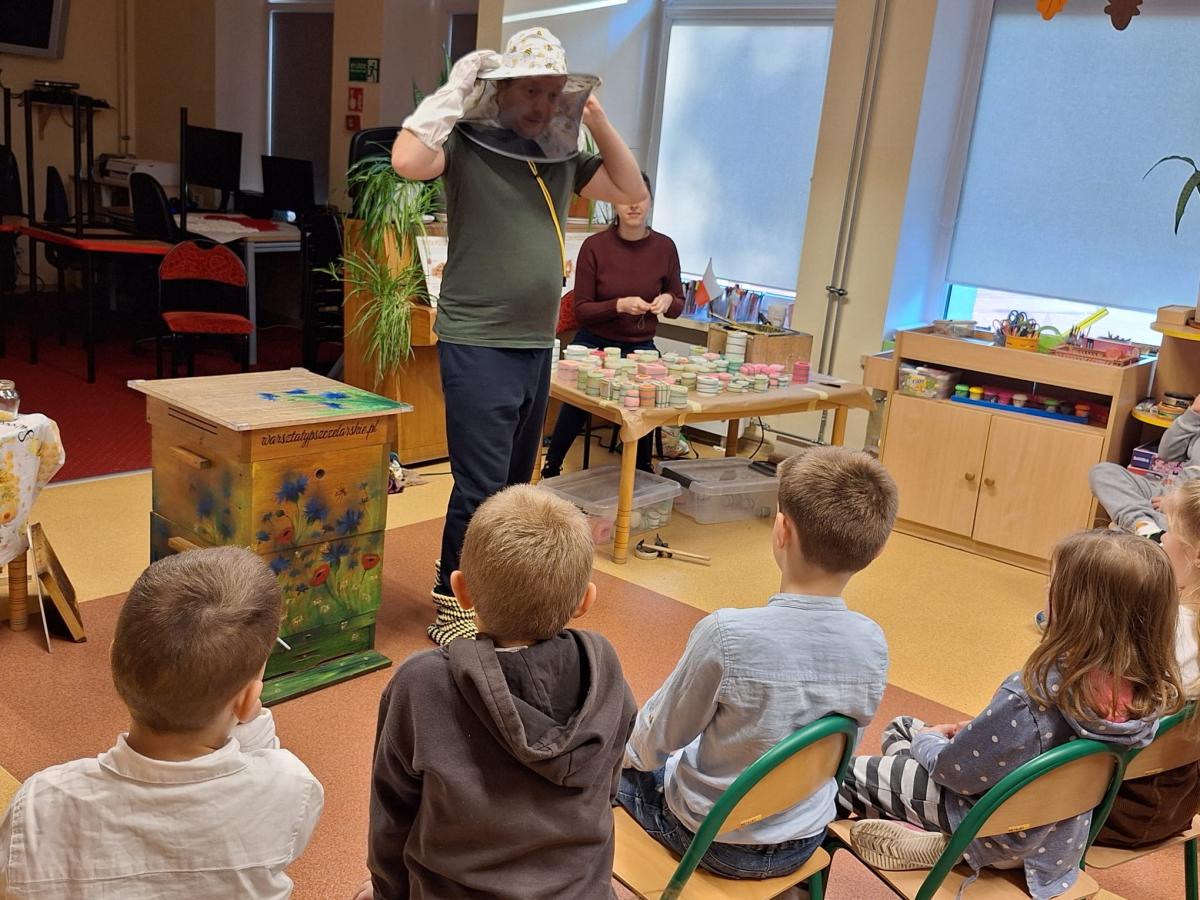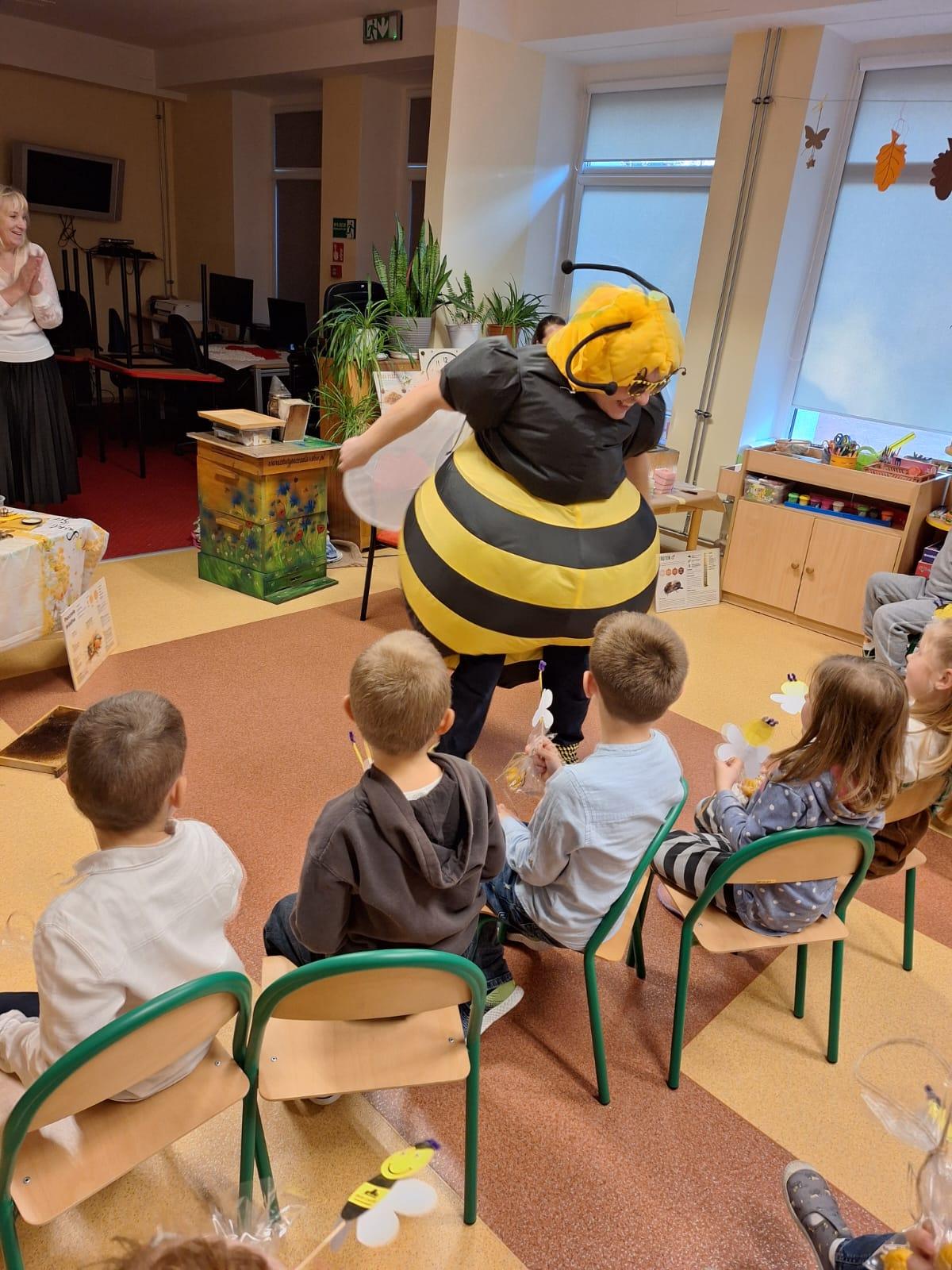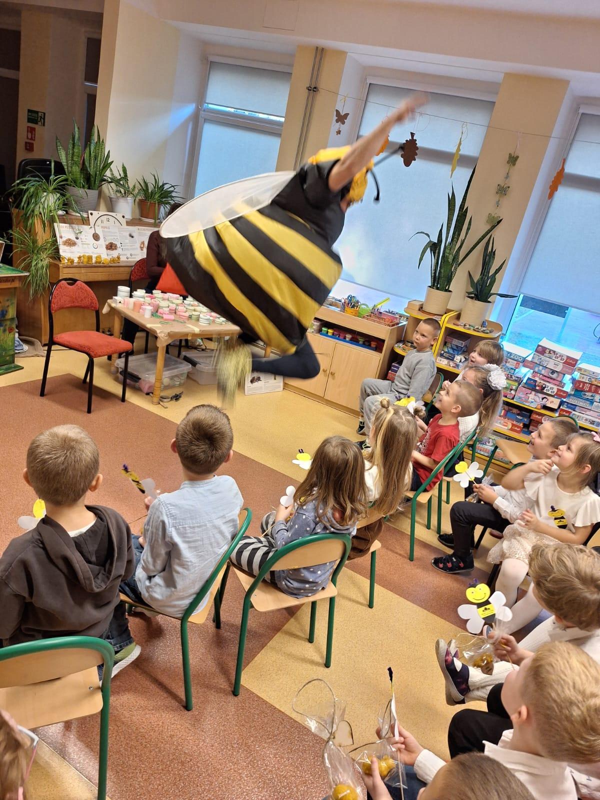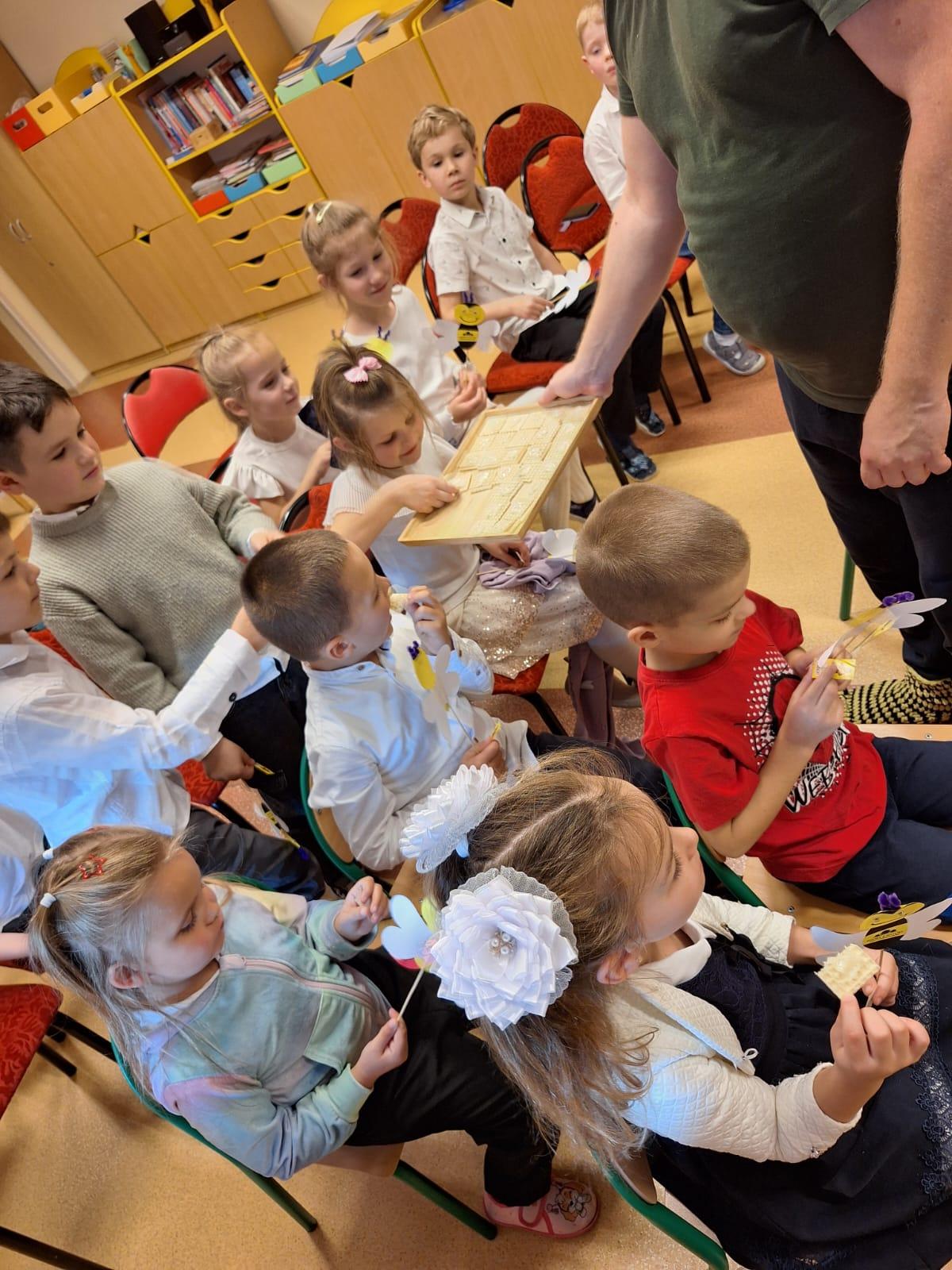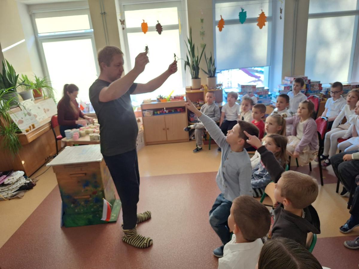 Warsztaty pszczelarskie Piątek, 7 listopada 2025 Treść Dzisiaj do przedszkol przleciały pszczoły.Opowiadały o swojej pracy.Tygryski suchały ciekawostek z życha pszczółek.