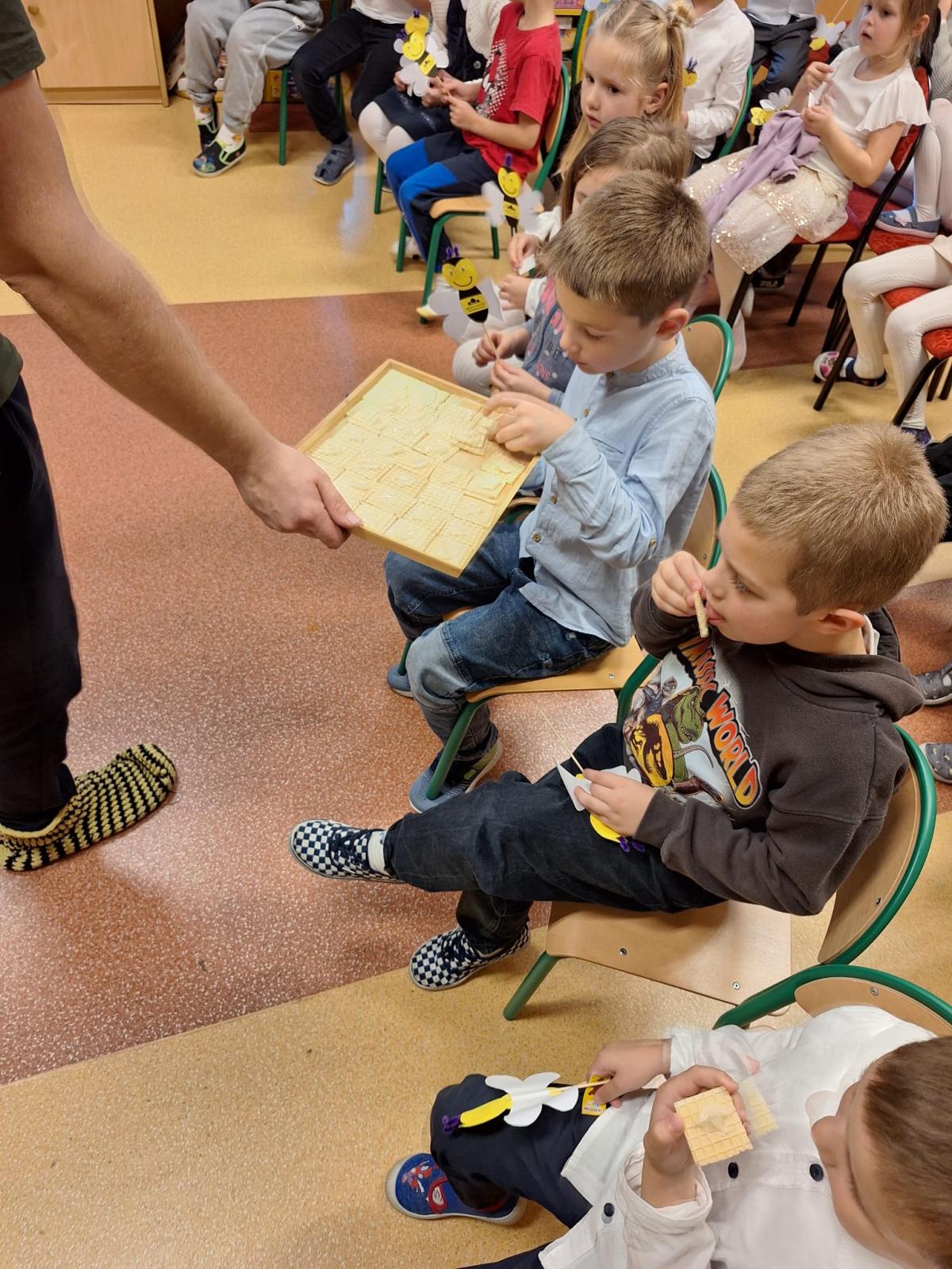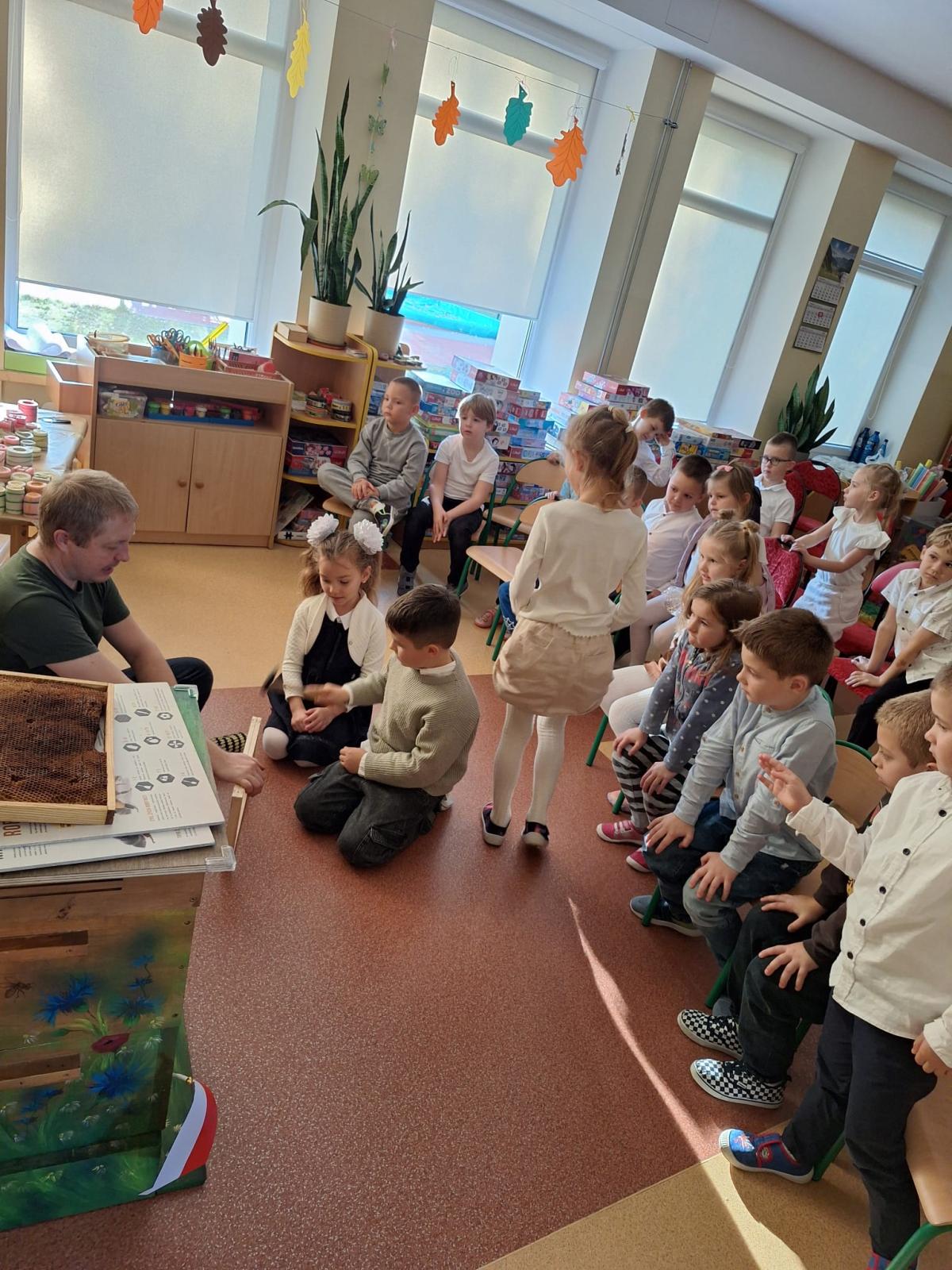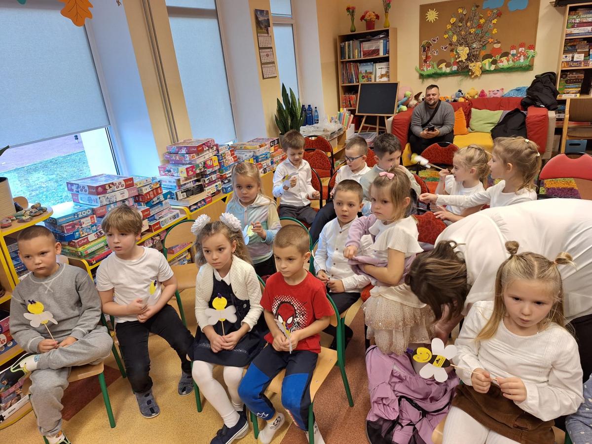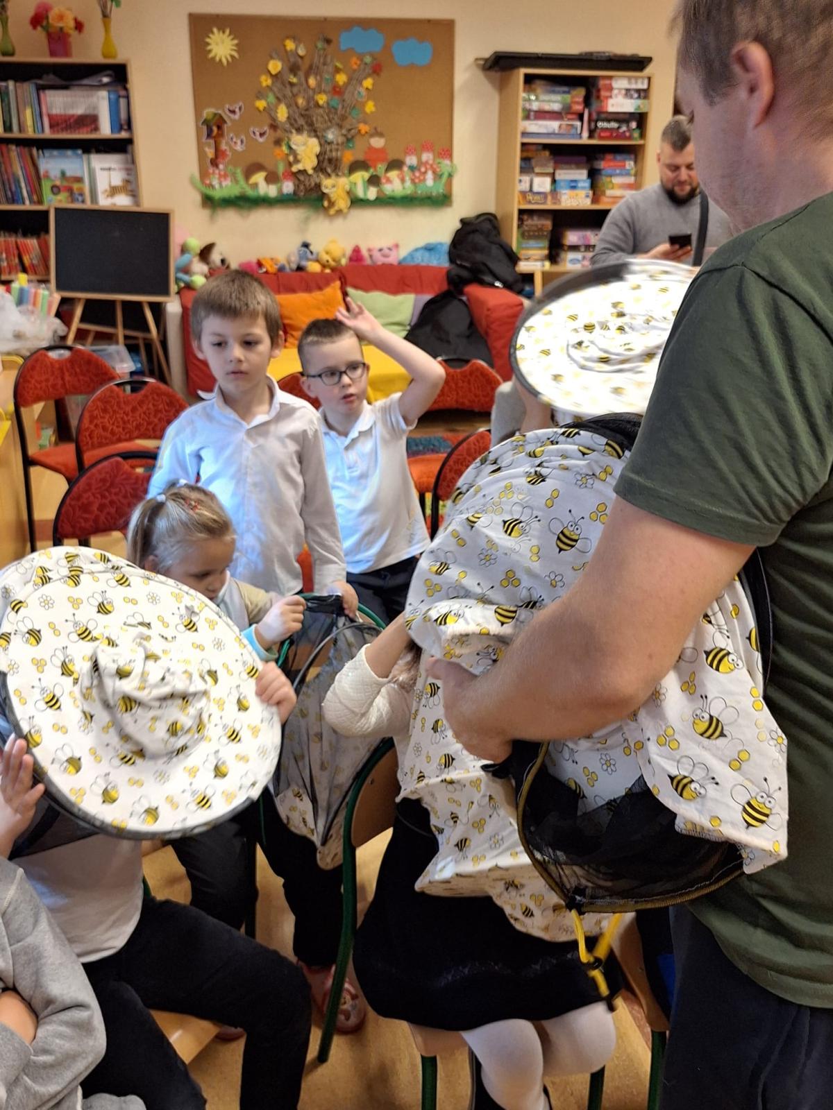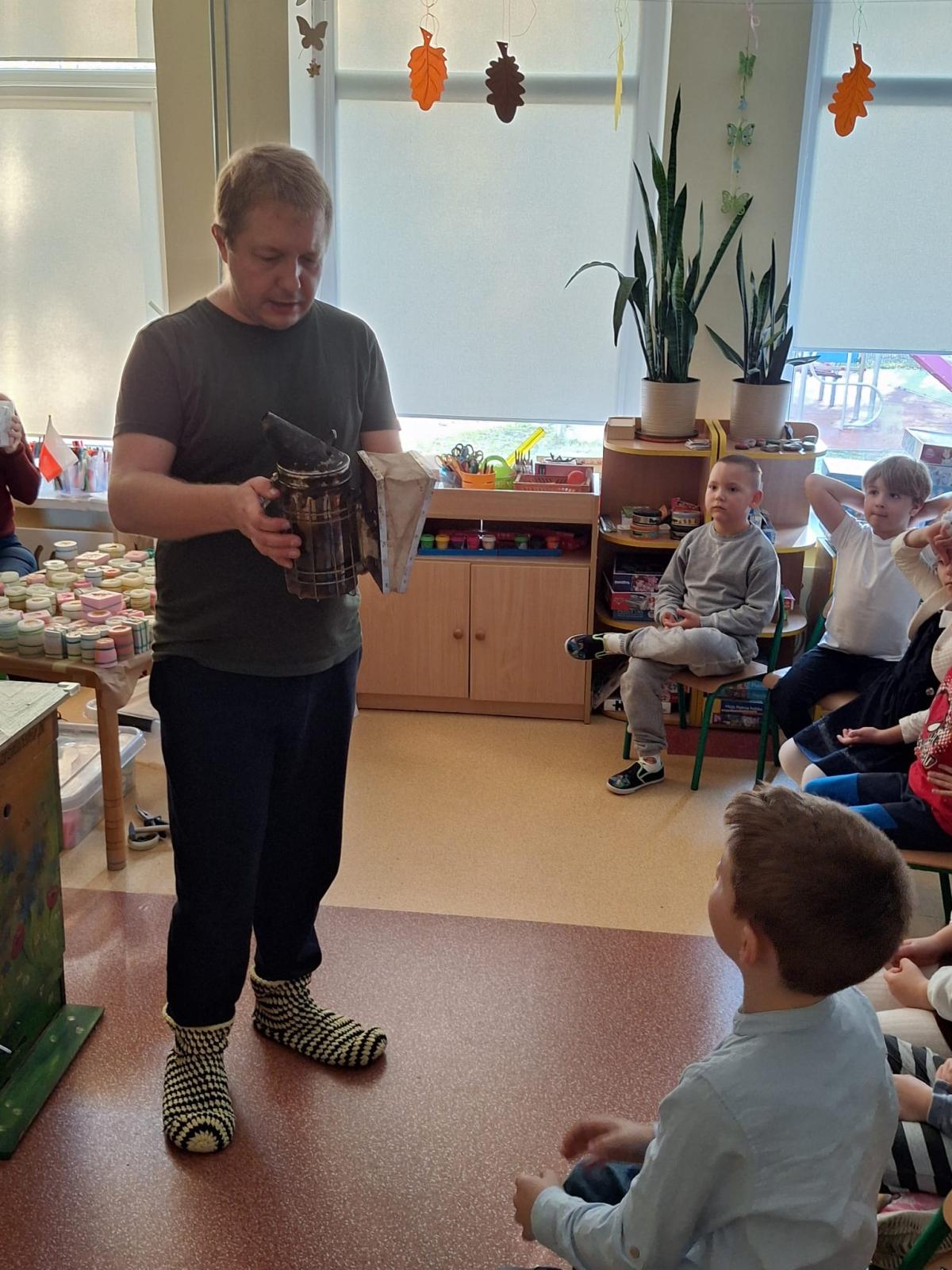 Warsztaty pszczelarskie Piątek, 7 listopada 2025 Treść Dzisiaj do przedszkol przleciały pszczoły.Opowiadały o swojej pracy.Tygryski suchały ciekawostek z życha pszczółek.