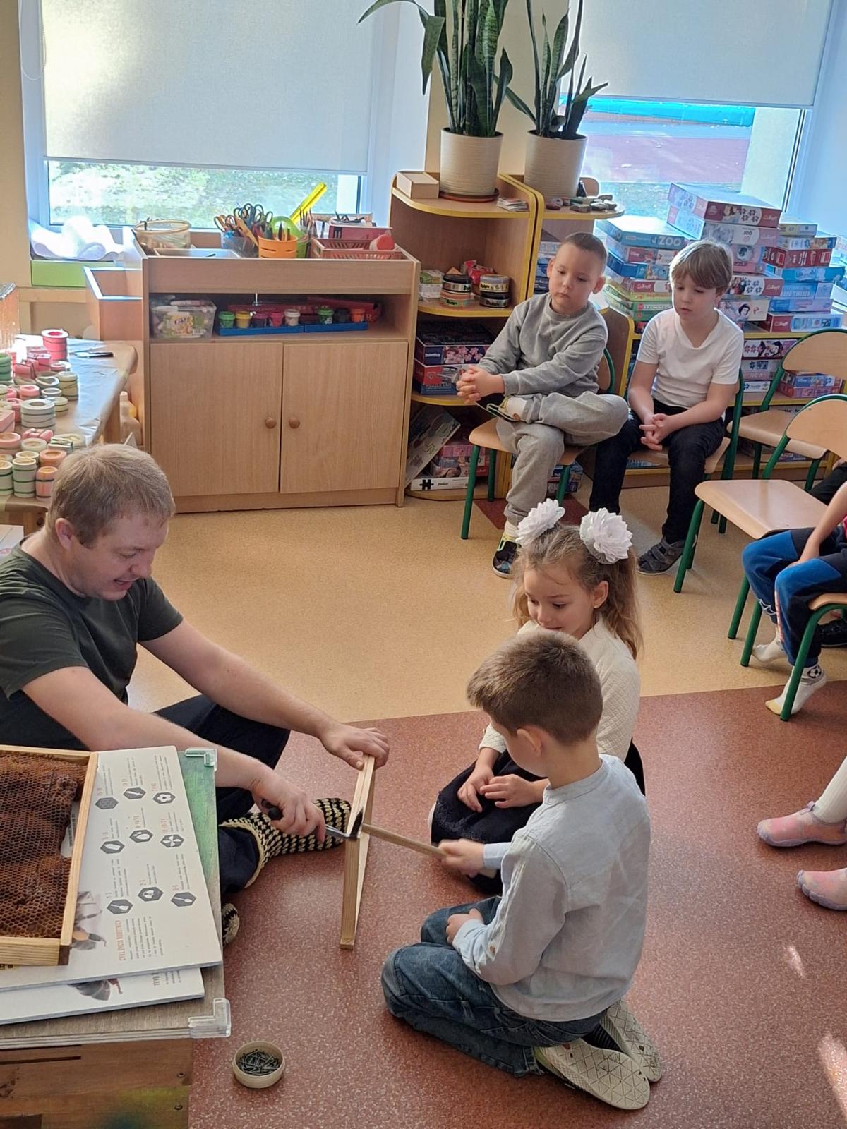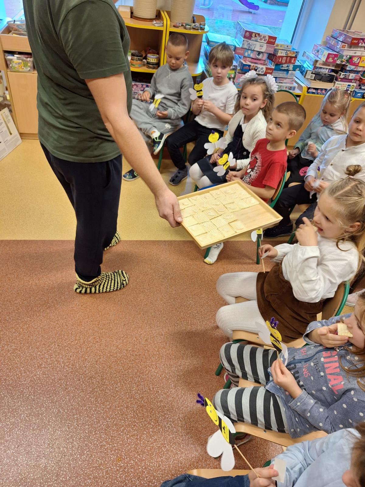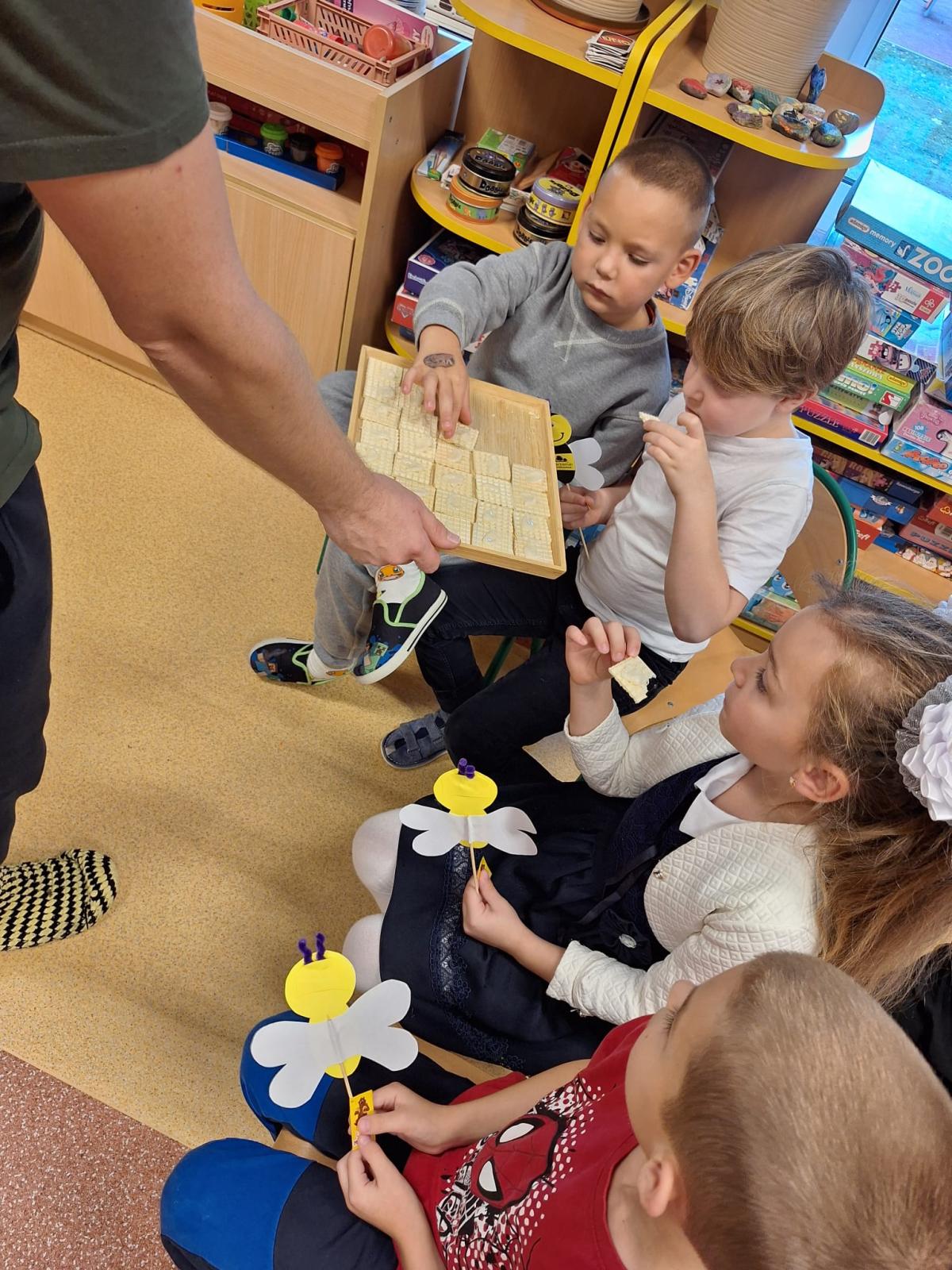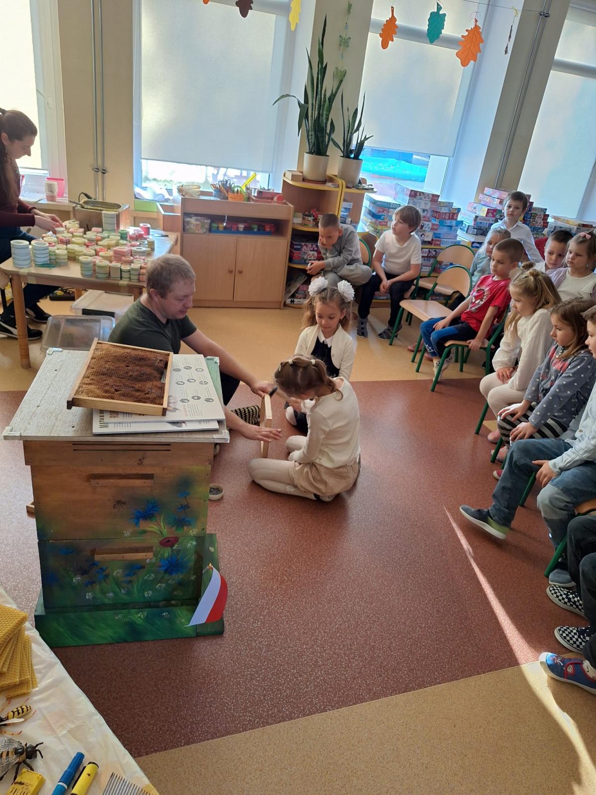 Warsztaty pszczelarskie Piątek, 7 listopada 2025 Treść Dzisiaj do przedszkol przleciały pszczoły.Opowiadały o swojej pracy.Tygryski suchały ciekawostek z życha pszczółek.