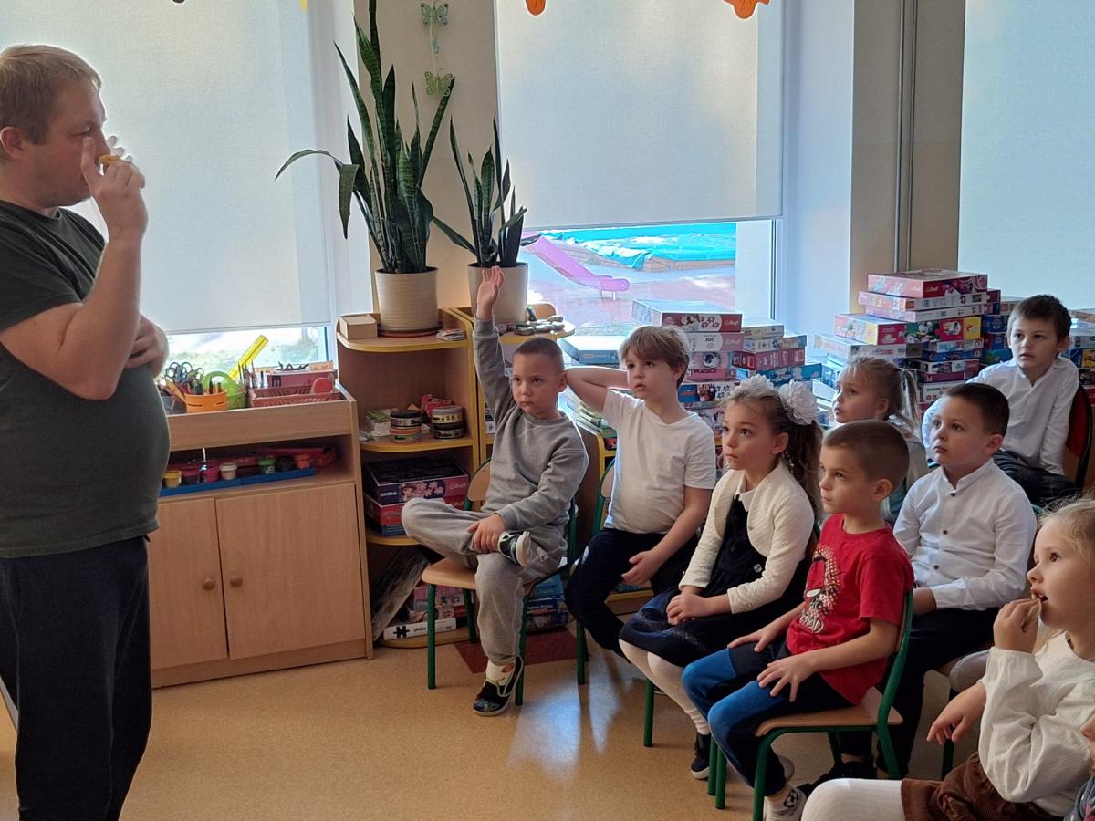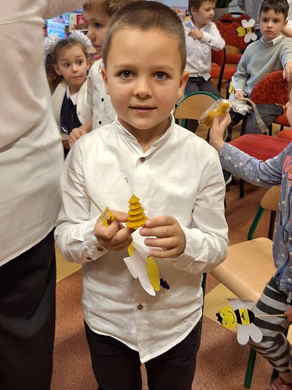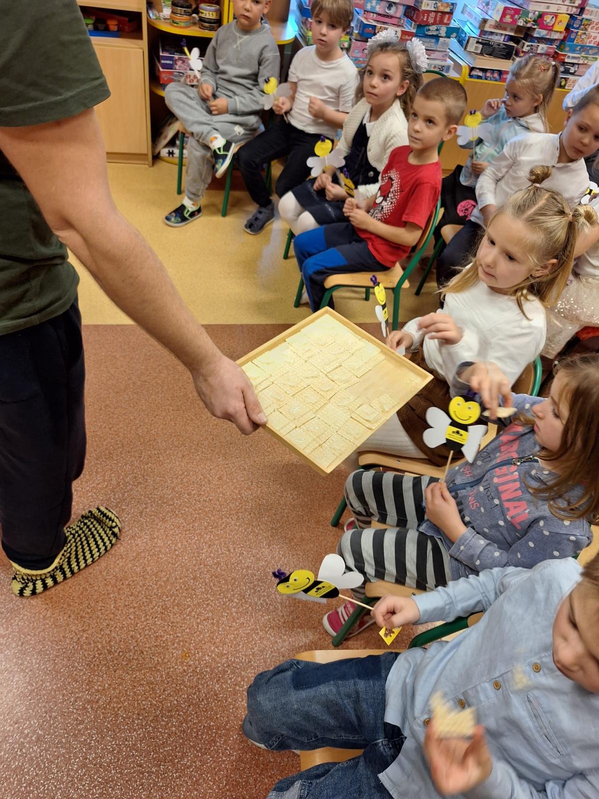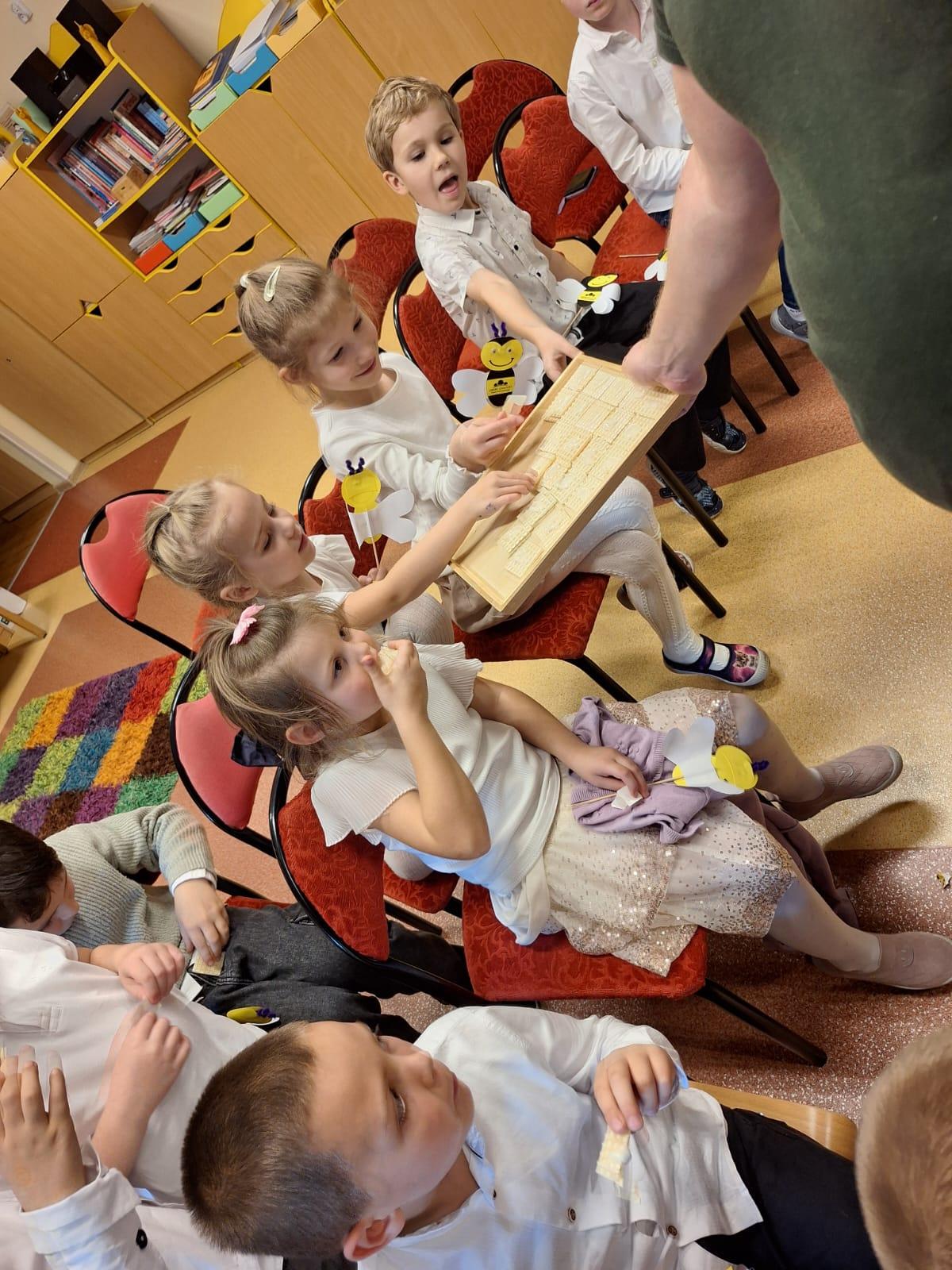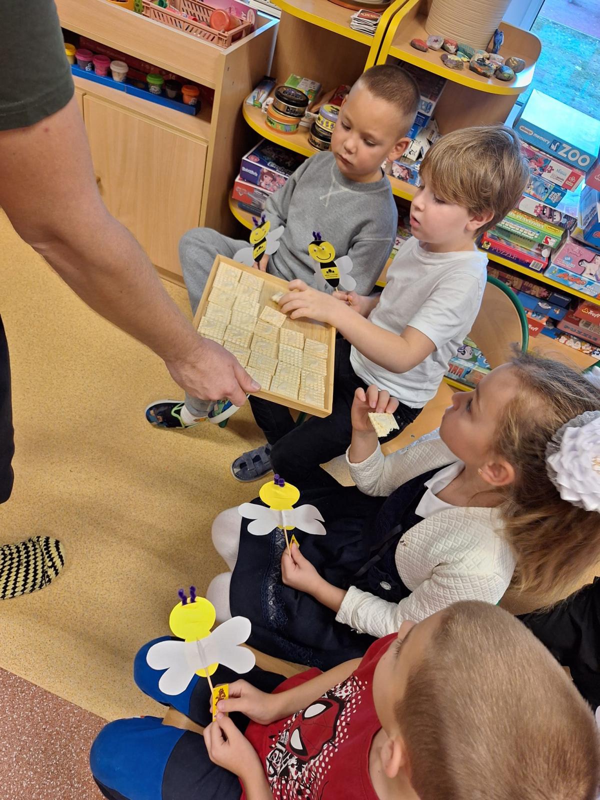 Warsztaty pszczelarskie Piątek, 7 listopada 2025 Treść Dzisiaj do przedszkol przleciały pszczoły.Opowiadały o swojej pracy.Tygryski suchały ciekawostek z życha pszczółek.