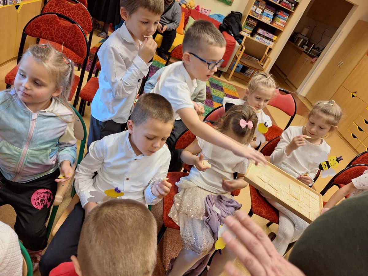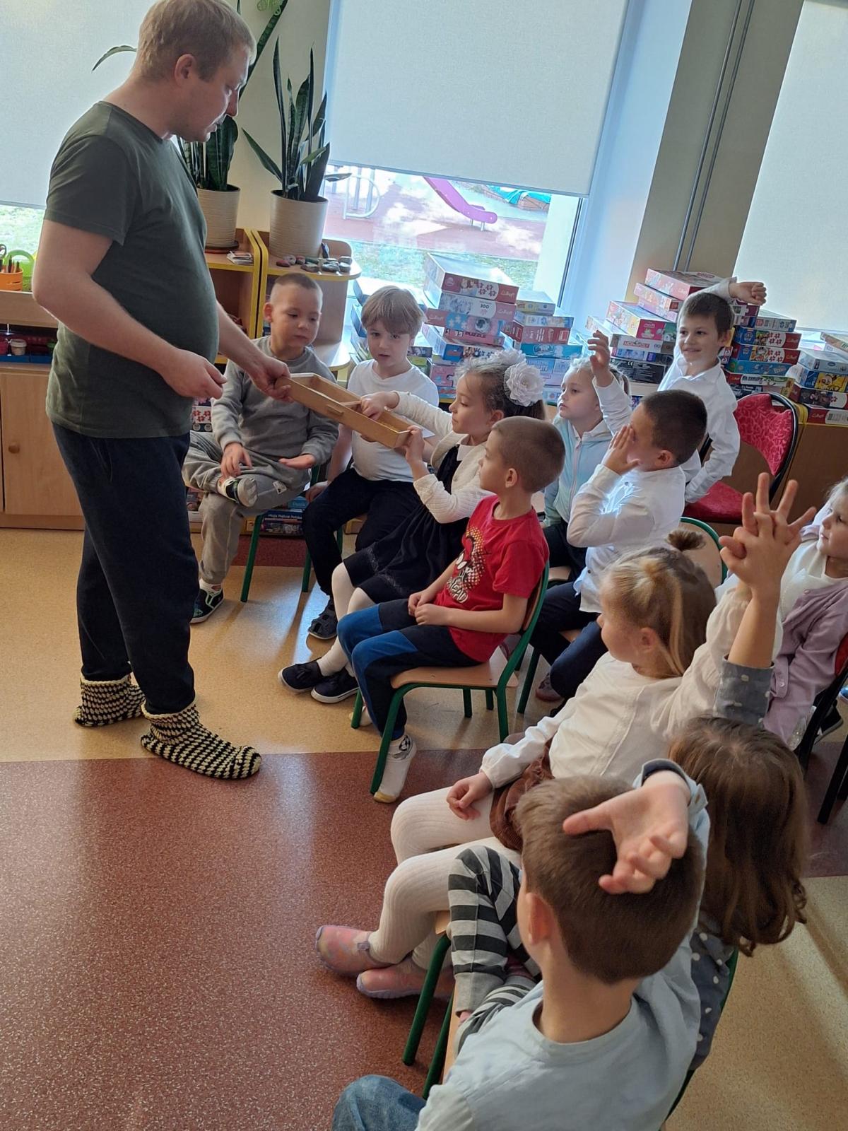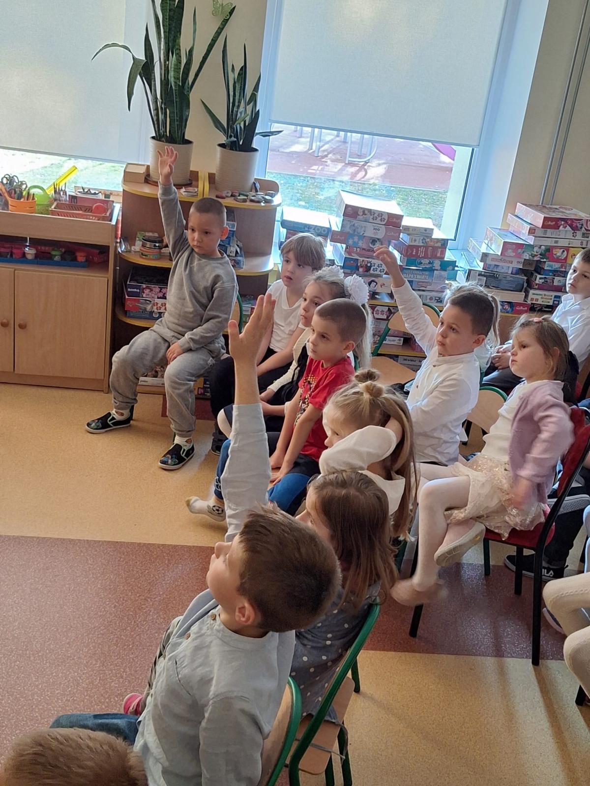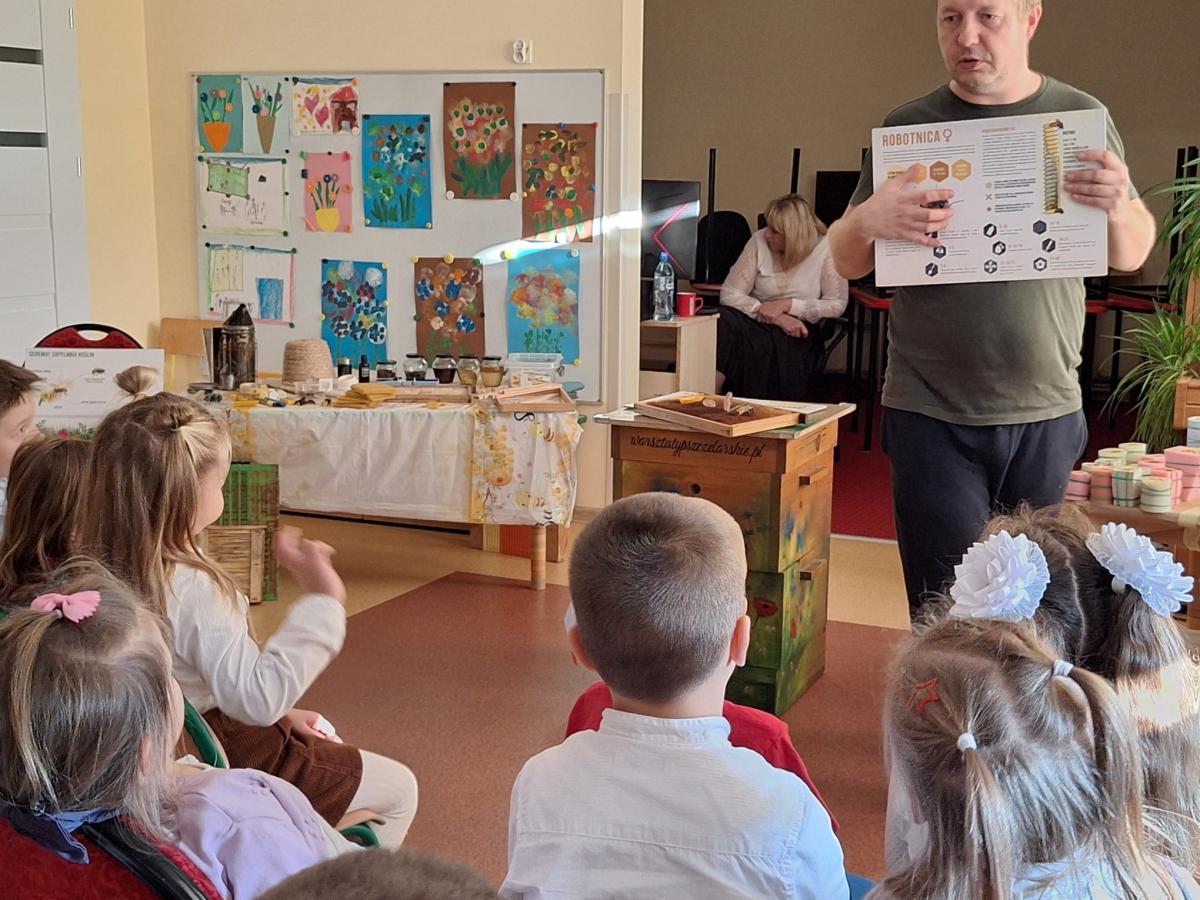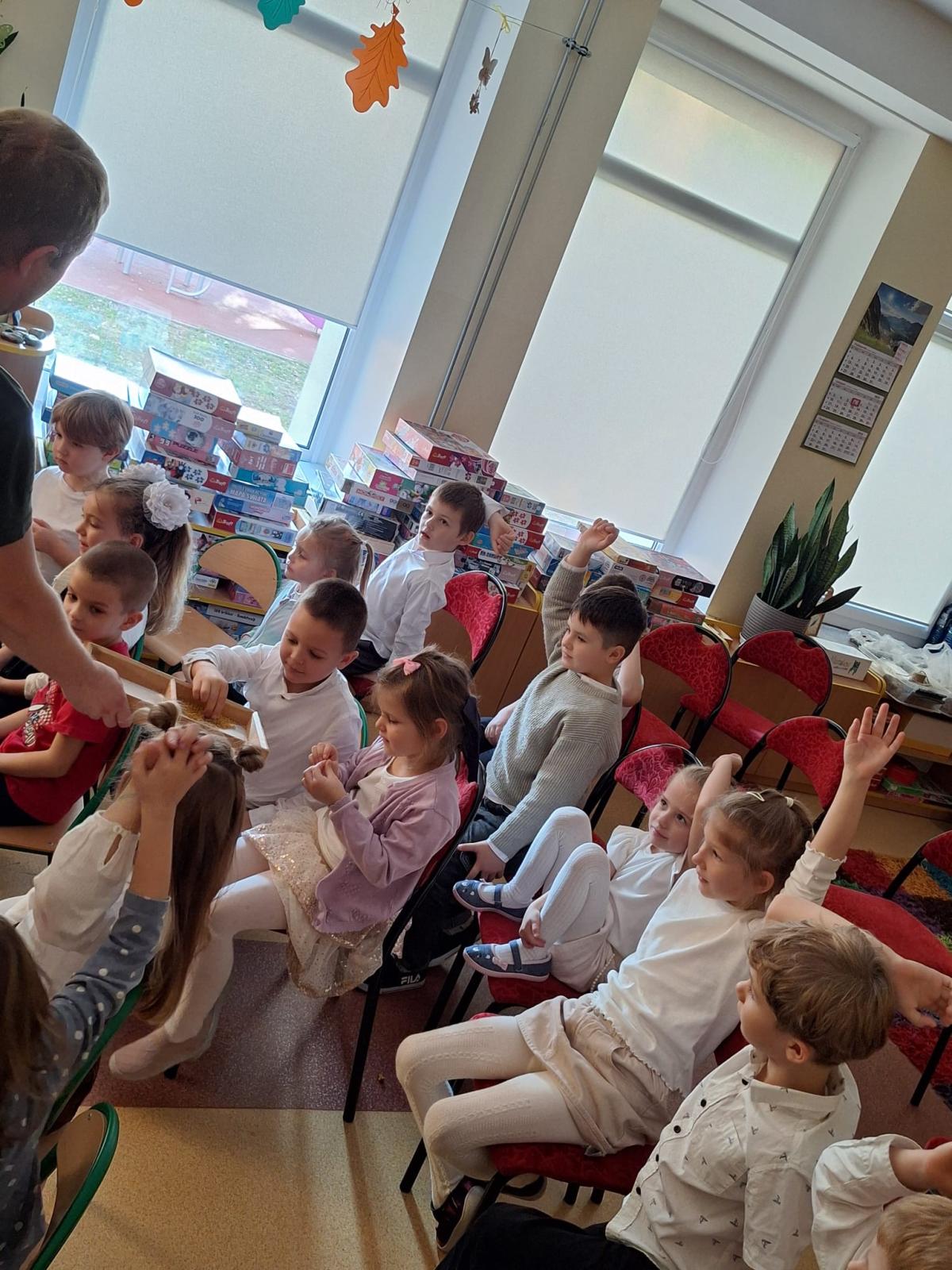 Warsztaty pszczelarskie Piątek, 7 listopada 2025 Treść Dzisiaj do przedszkol przleciały pszczoły.Opowiadały o swojej pracy.Tygryski suchały ciekawostek z życha pszczółek.