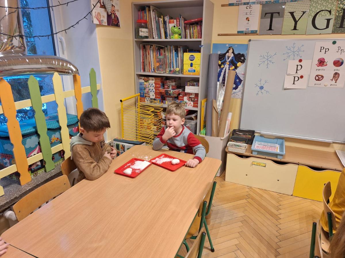 Pachnące kule. Wtorek, 13 stycznia 2026 Treść Na dzisiejszych zajęciach Pani Ola z Panią Asią robił z Tygeyskami pachnące kule. Zobaczcie sami jak świetnie się bawiliśmy.