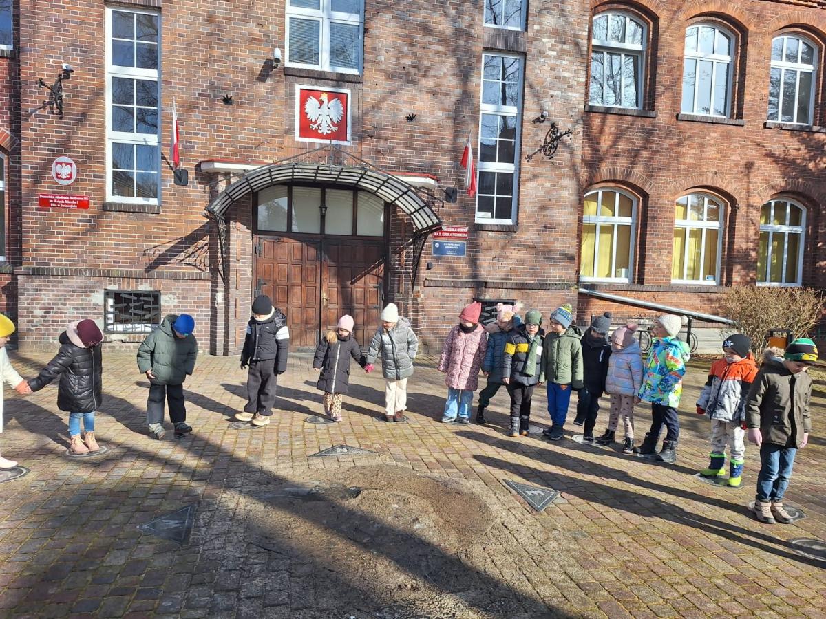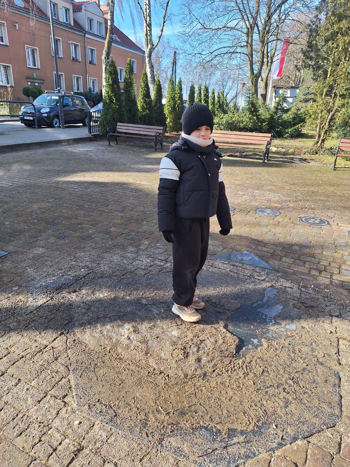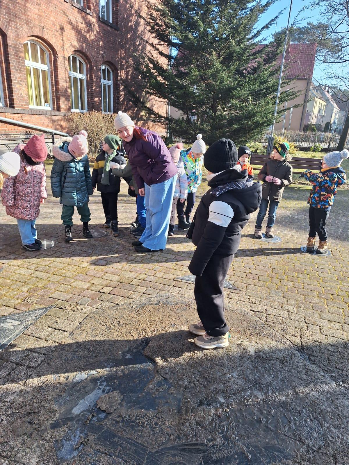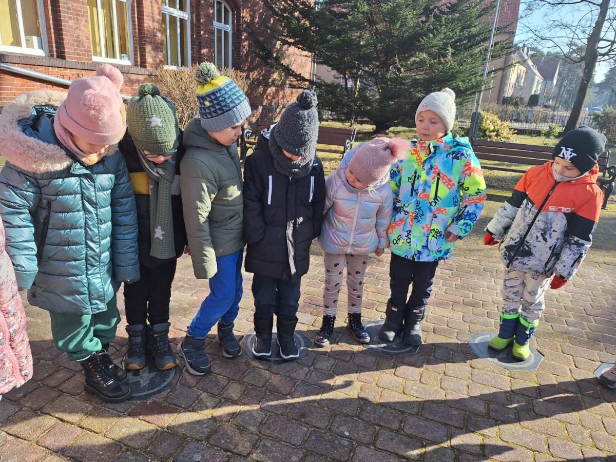 Wiosenny spacerek Niedziela, 1 marca 2026 Treść Na wiosennym spacerku oglądaliśmy zegar słoneczny koło szkoły.
