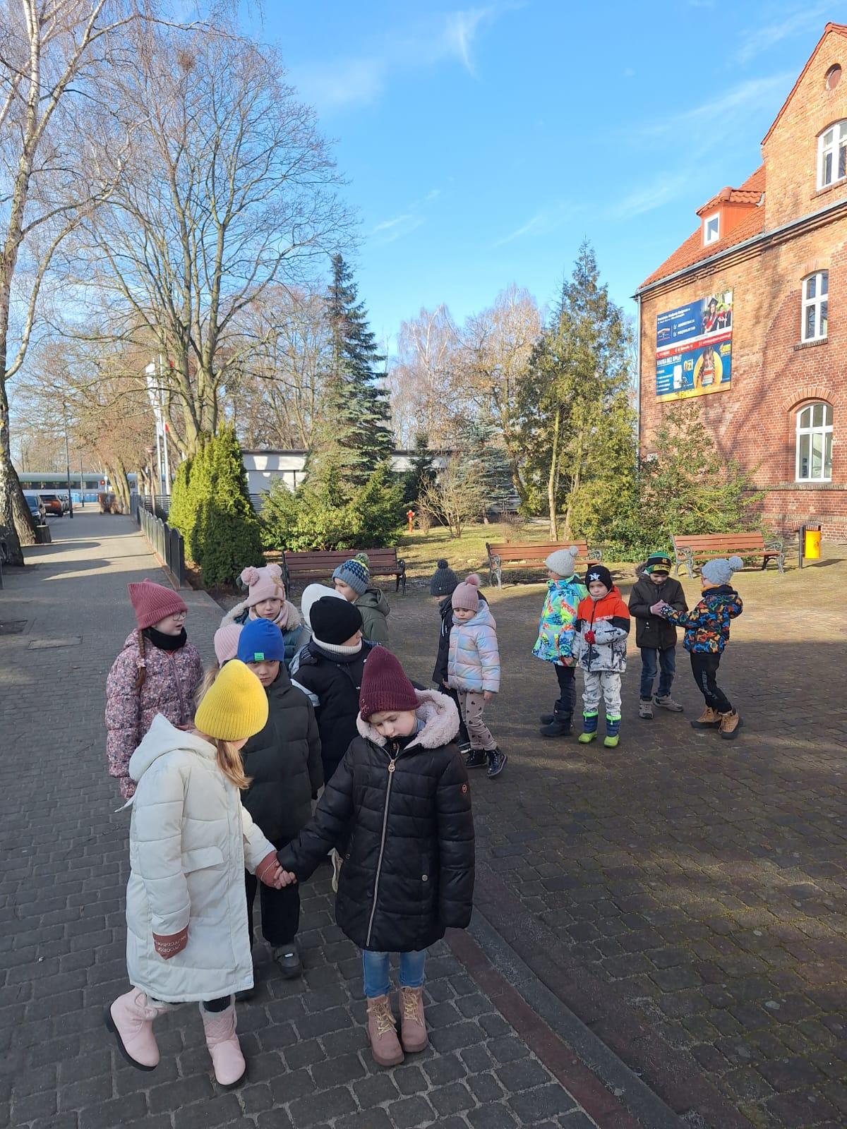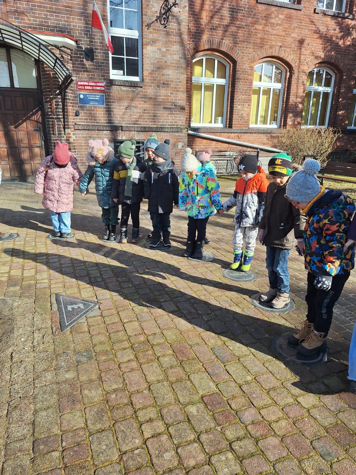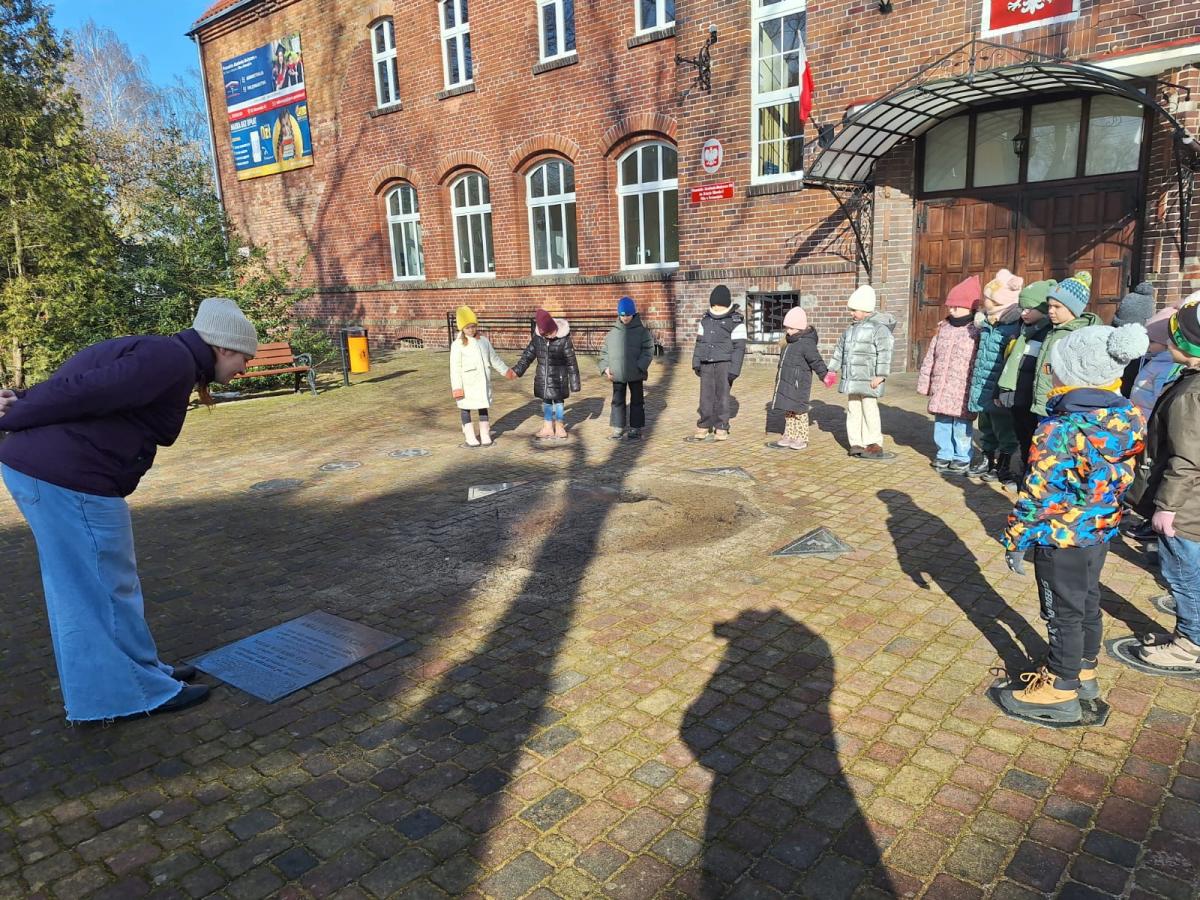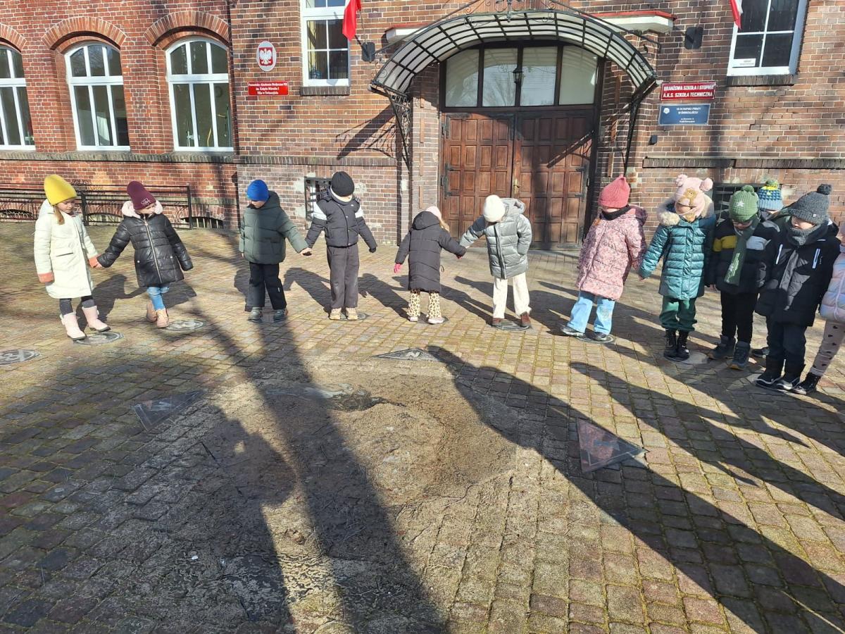 Wiosenny spacerek Niedziela, 1 marca 2026 Treść Na wiosennym spacerku oglądaliśmy zegar słoneczny koło szkoły.