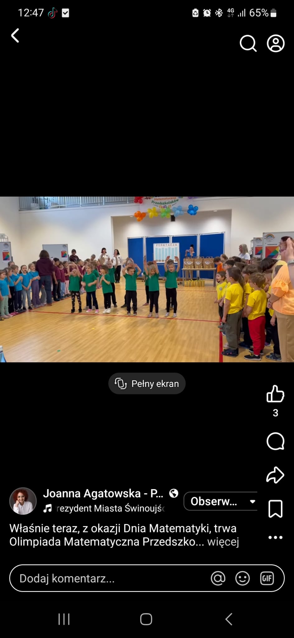 Olimpiada matemtyczna Piątek, 13 marca 2026 Treść Matematyka fajna rzecz! Tygryski uczestniczły6 w matematycznej olimpiadzie. Poradziły sobe koncertowo. Zobaczcie sami.....